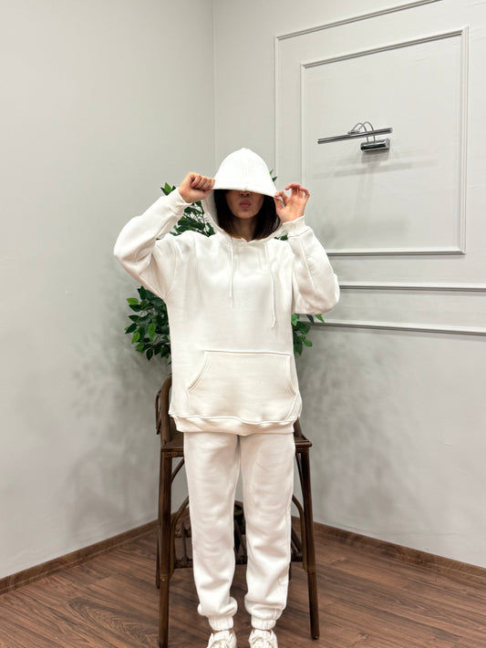 Miley Kapüşonlu Beyaz Eşofman Takımı