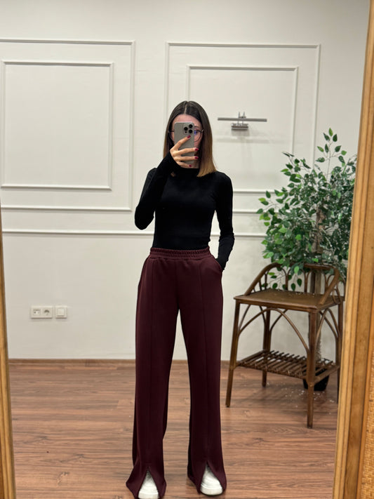 Megi Scuba Yırtmaç Detay Bordo Pantolon