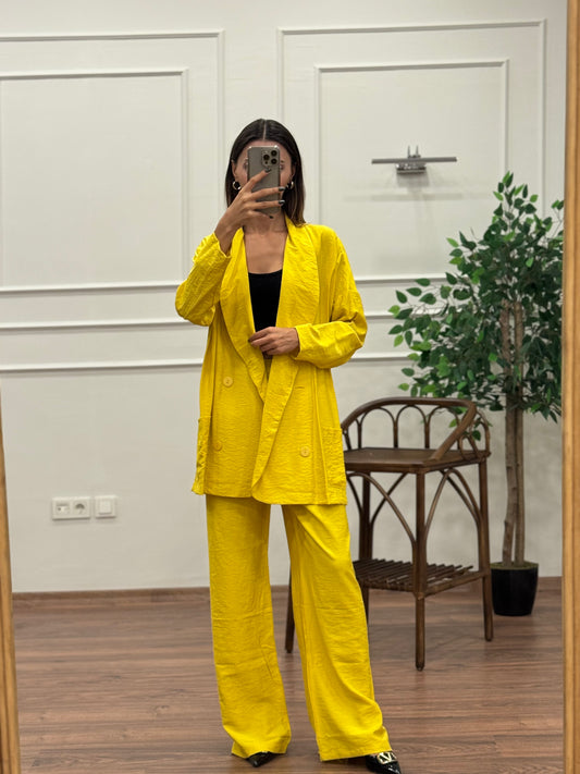 İndirim 69%Müslin Blazer Ceket Pantolon Hardal Takım