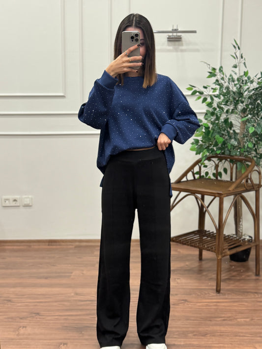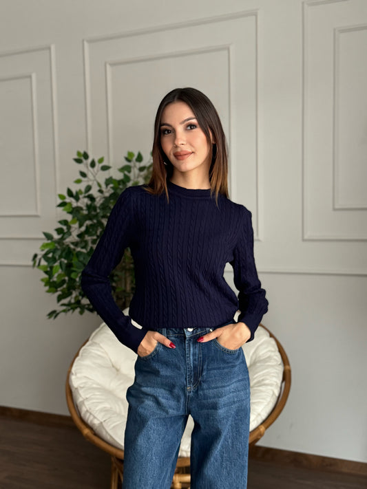 İndirim 50%Örgü Detay Lacivert Bluz
