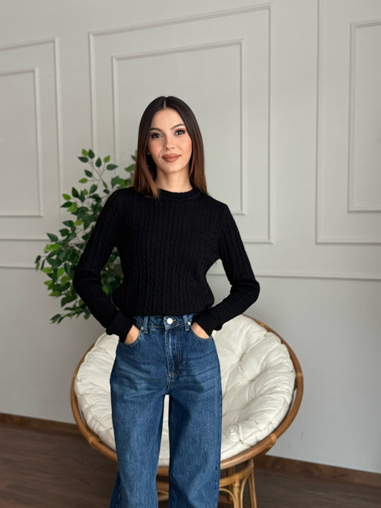 TükendiÖrgü Detay Siyah Bluz