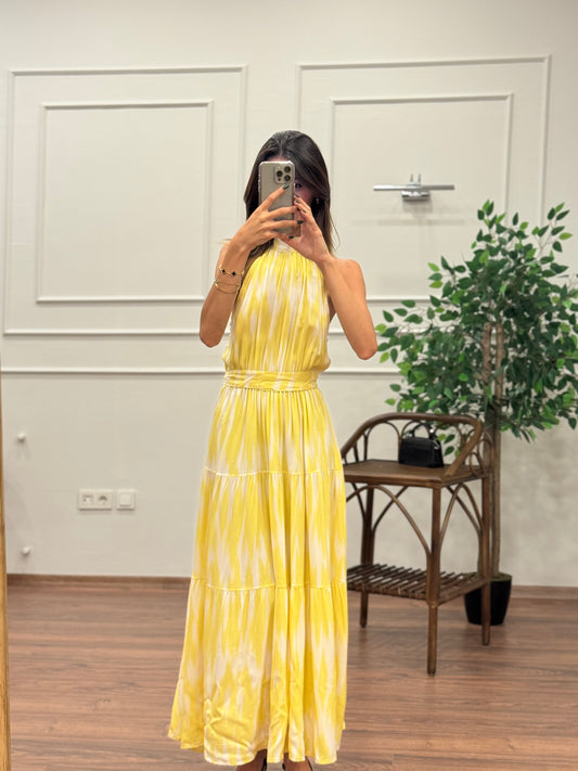 İndirim 65%Viskon Kumaş Etnik Desen Sarı Elbise