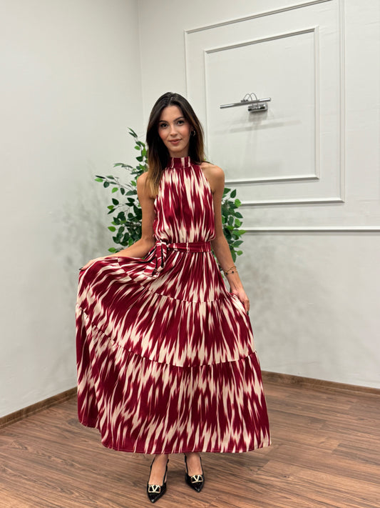 Viskon Kumaş Etnik Desen Bordo Elbise