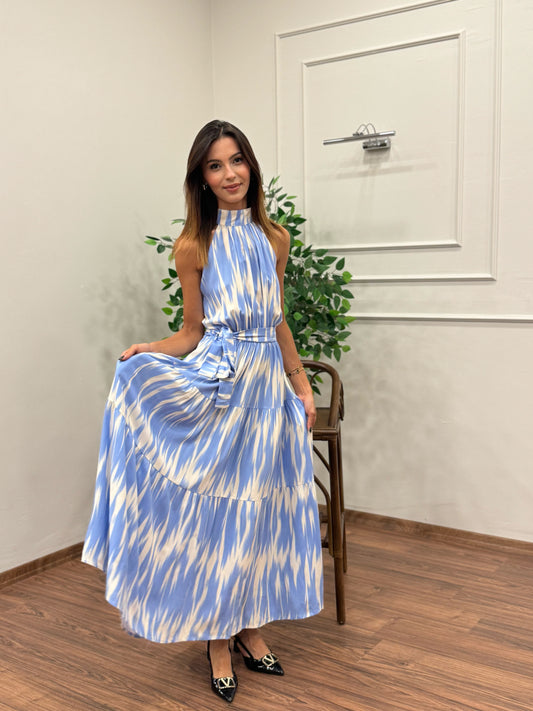 İndirim 65%Viskon Kumaş Etnik Desen Bebe Mavi Elbise
