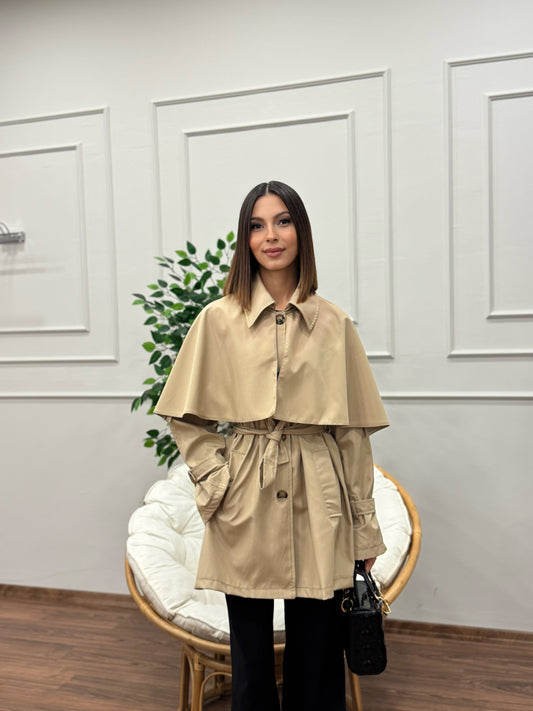 Veronica Pelerinli Bej Trençkot