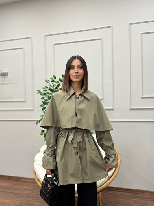 Veronica Pelerinli Haki Trençkot