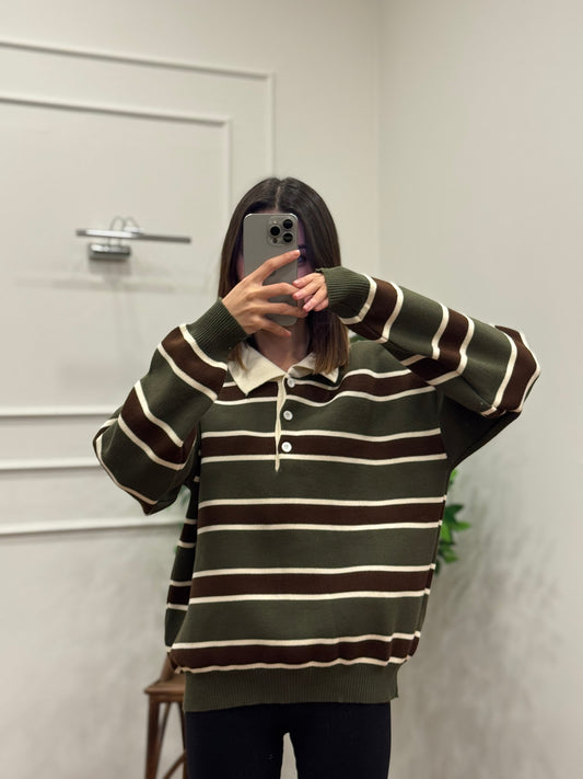 Vintage Haki Polo Yaka Kazak
