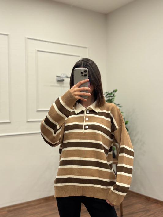 Vintage Bej Polo Yaka Kazak