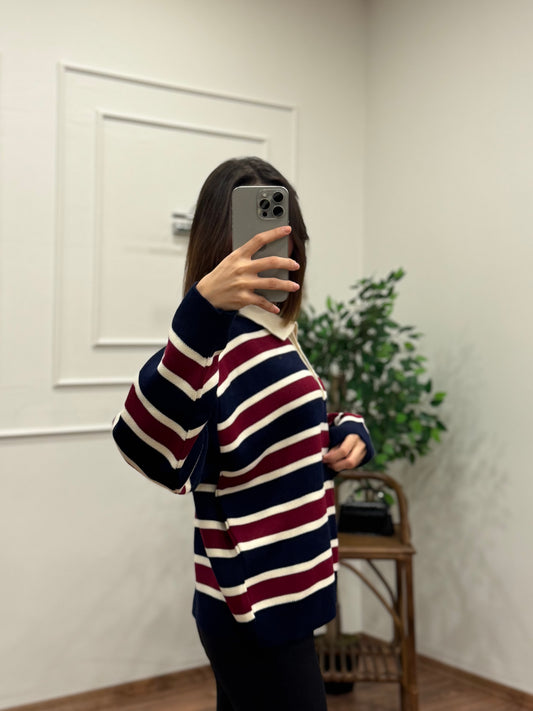 Vintage Lacivert Polo Yaka Kazak