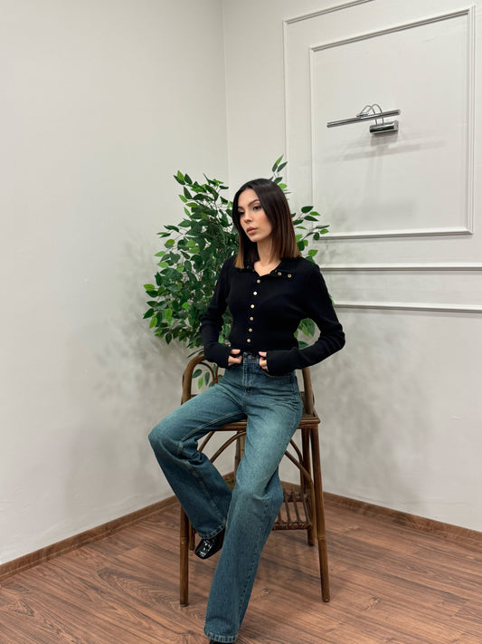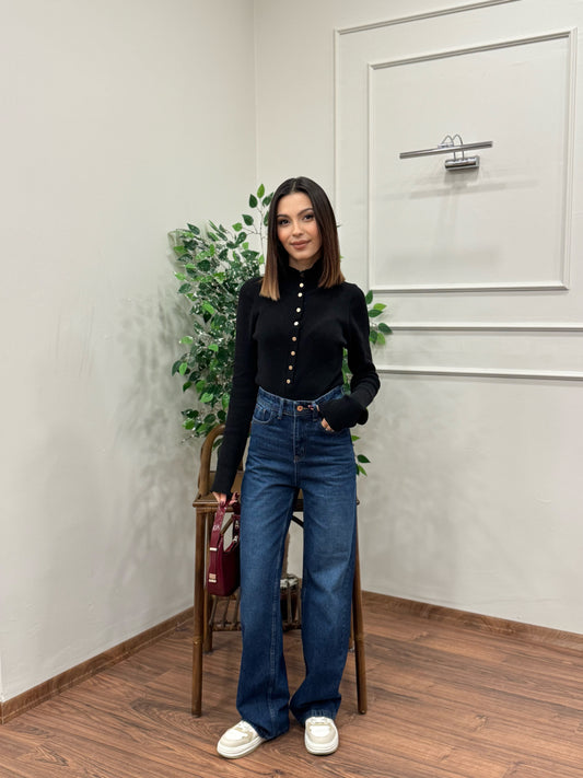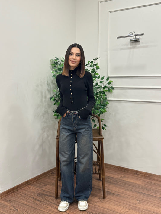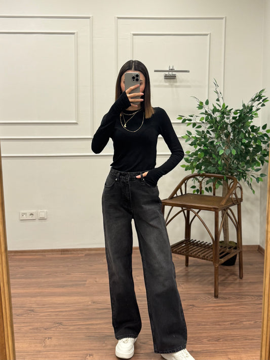 Wide Leg Siyah Yıkamalı Jean