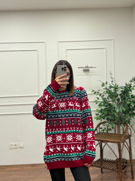Yılbaşı Özel Kırmızı Triko Kazak