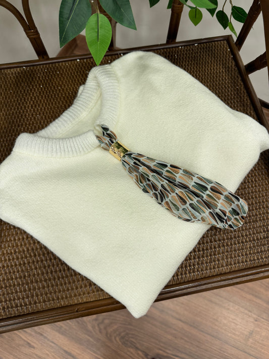 İndirim 18%Wine Fular Detay Triko Beyaz Kazak