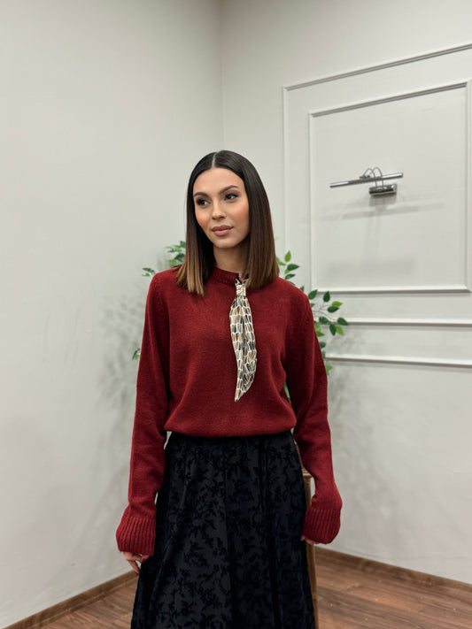 İndirim 18%Wine Fular Detay Triko Bordo Kazak