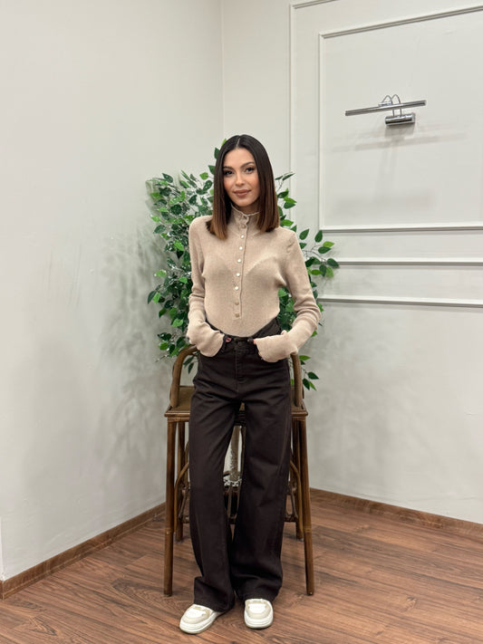 İndirim 27%Wide Leg Kahverengi Jean
