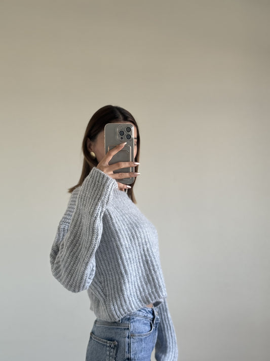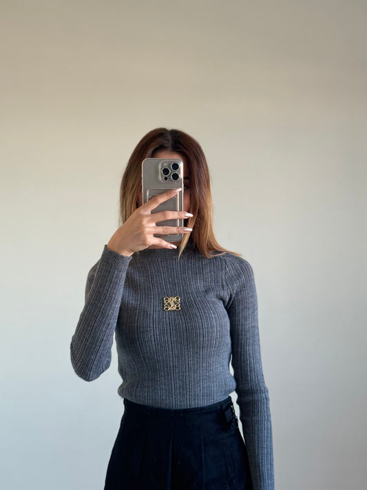Gri Aksesuar Detay Marka Muadil Triko Bluz
