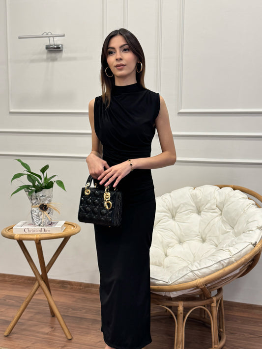 İndirim 22%Gold Goddess Drape Detay Siyah Elbise