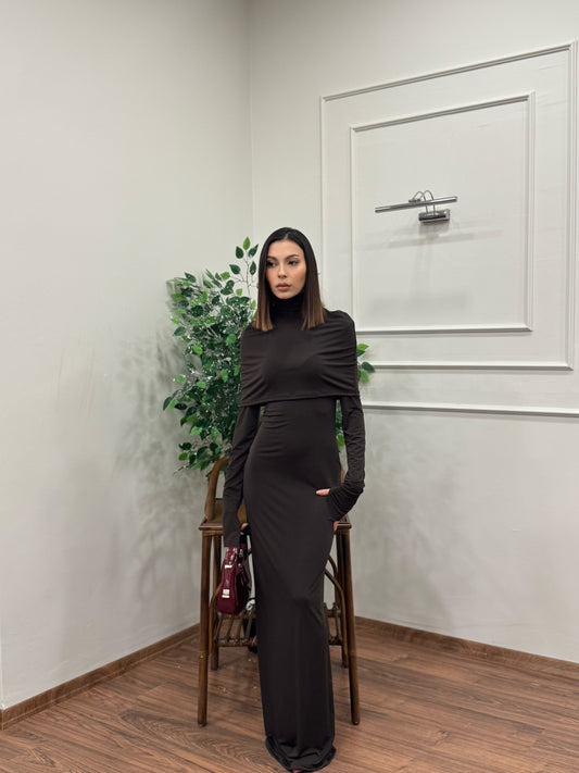 İndirim 22%Gold Goddess Drape Detay Kahverengi Elbise