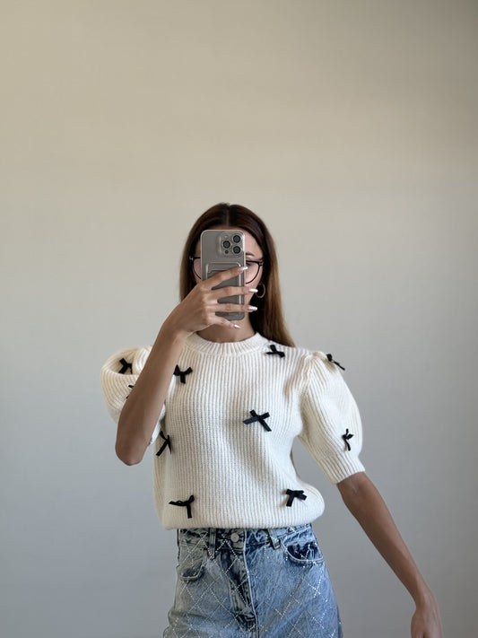 İndirim 57%Karpuz Kol Kurdele Detay Krem Kazak