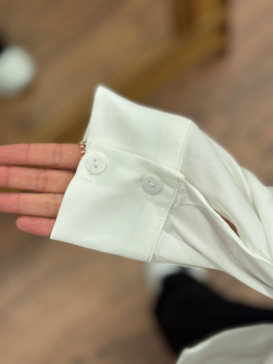 Saten Kumaş Geniş Kalıp Beyaz Gömlek