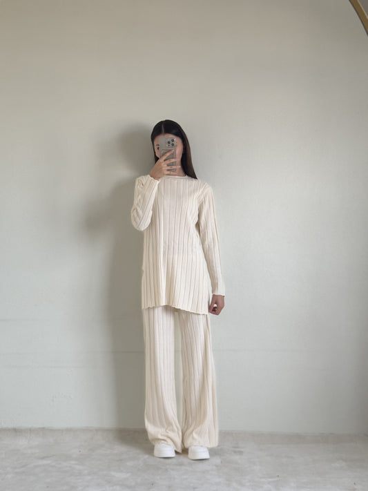 Triko Düz Kesim Bluz İspanyol Paça Pantolon Takım