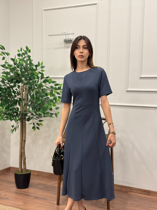 İndirim 49%Oysh Önü Garnili Antrasit Kloş Elbise