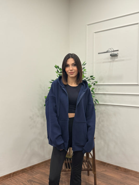 Lisa Kapüşonlu Lacivert Hoodie
