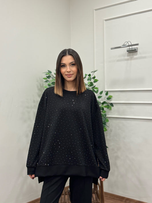 İndirim 40%Luna Taş Baskı Siyah Bluz