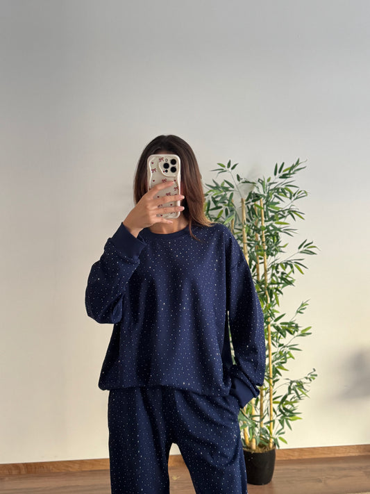 Serpme Taş Baskı Modal Kumaş Lacivert Takım