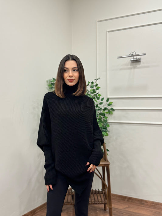 TükendiTria V Kesim Siyah Tasarım Kazak