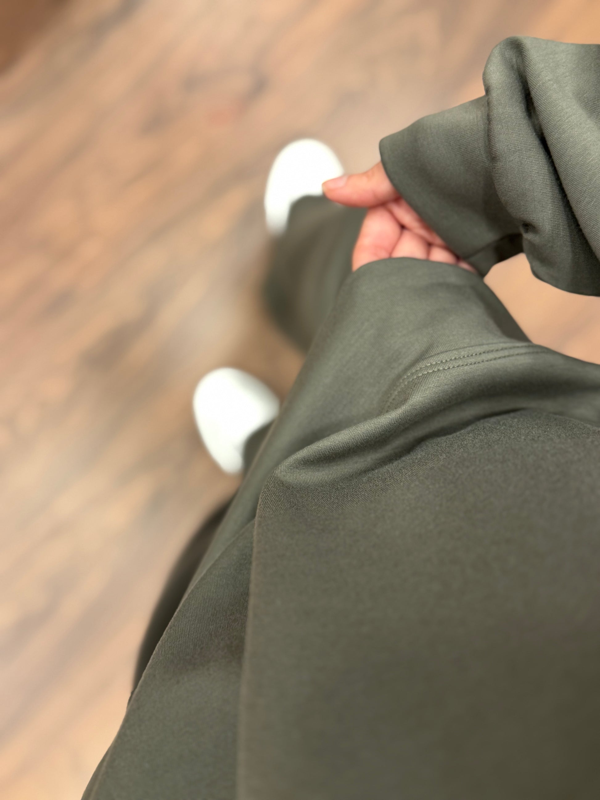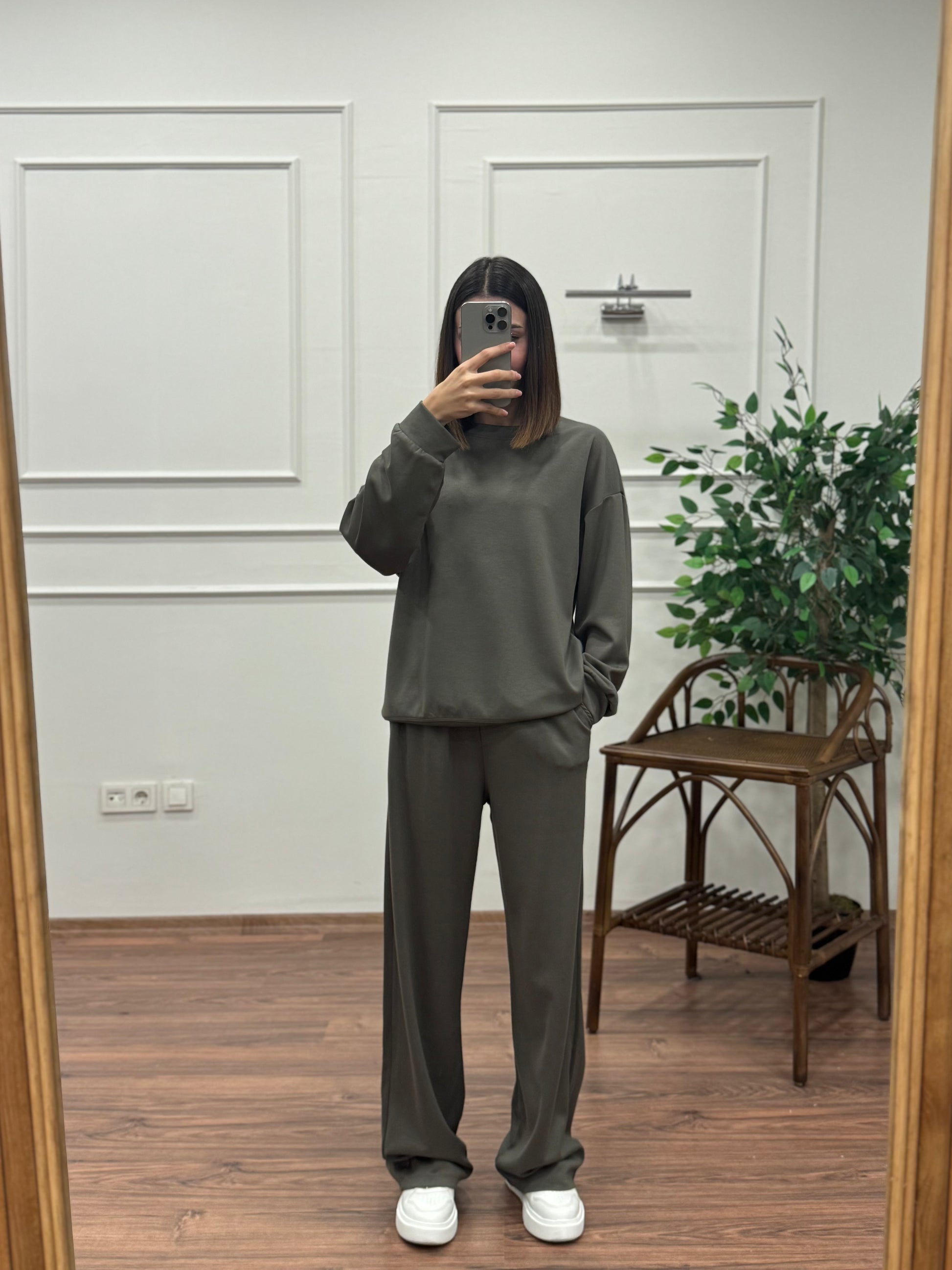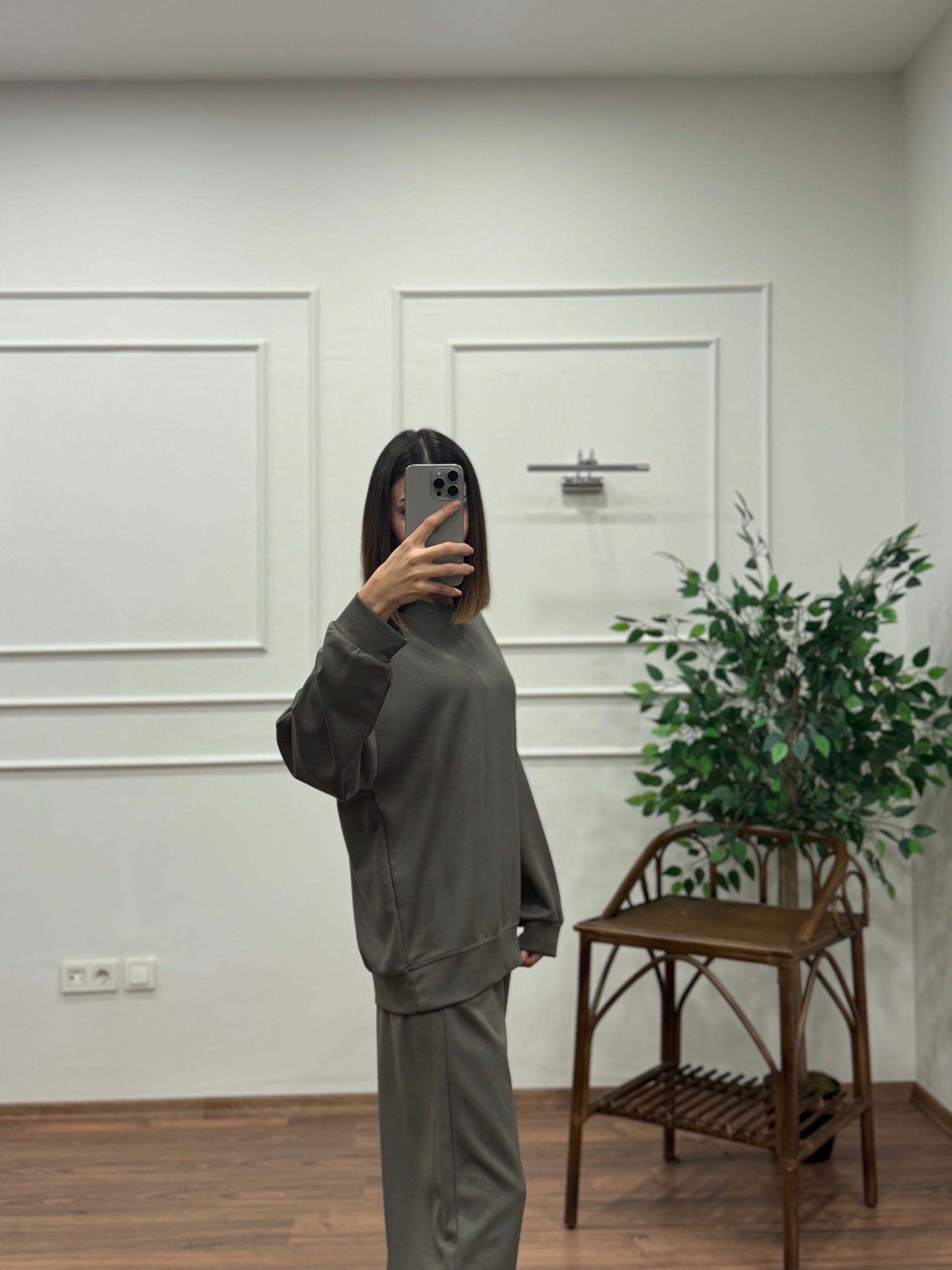 İndirim 66%Modal Kumaş Oversize Bluz Şortlu Takım Haki