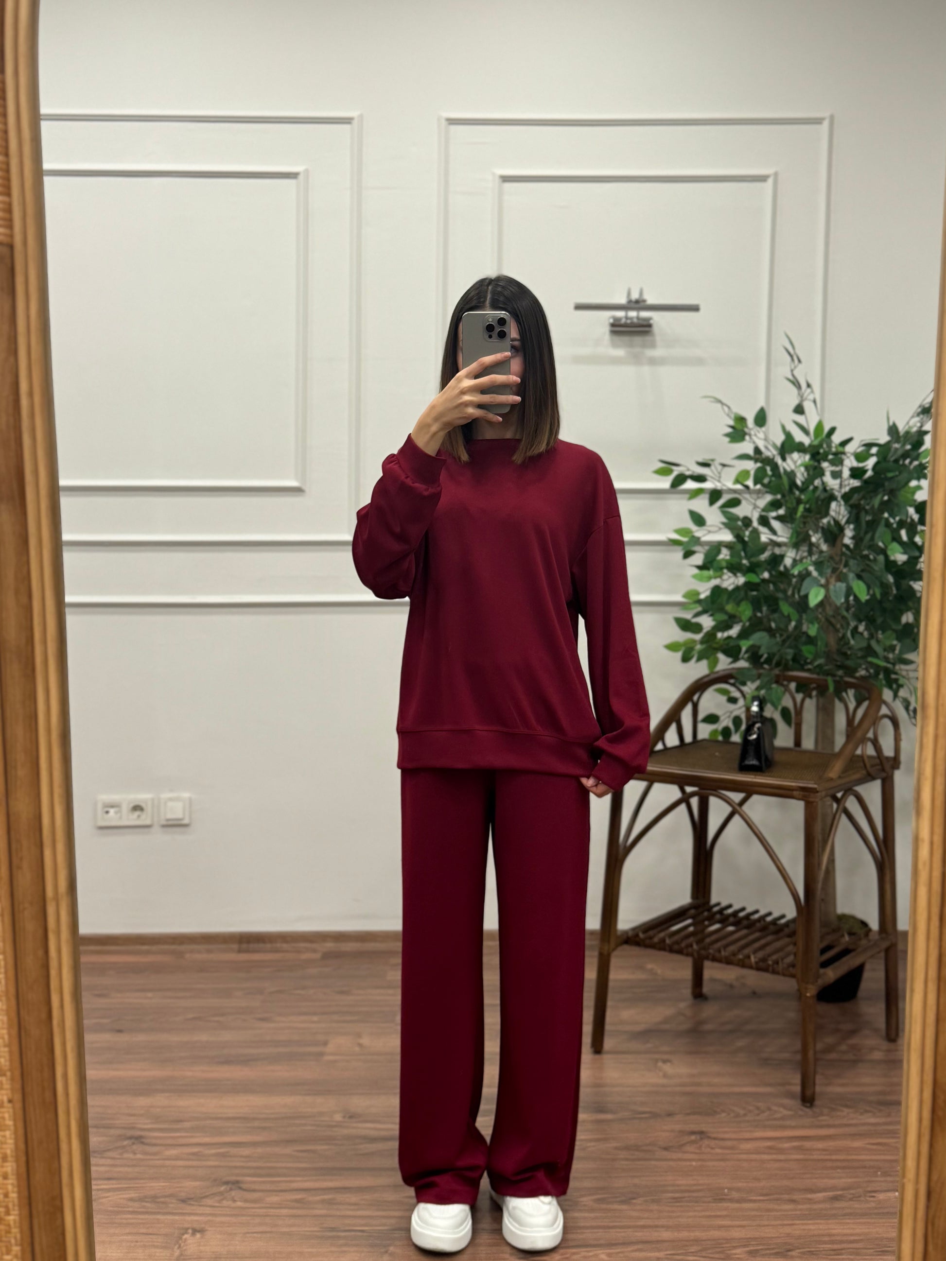 İndirim 15%Çizgi Desen Taşlı Bordo Takım