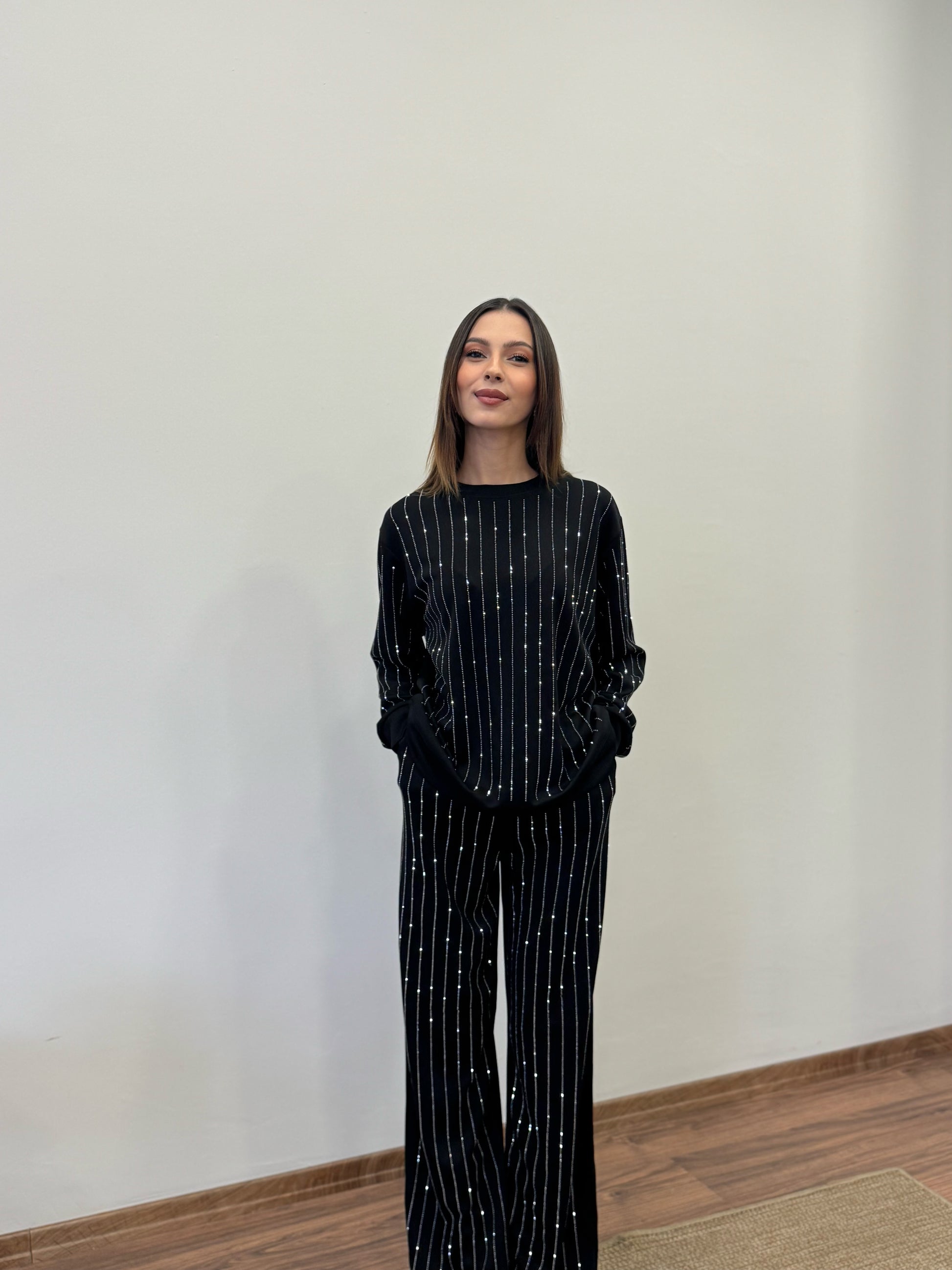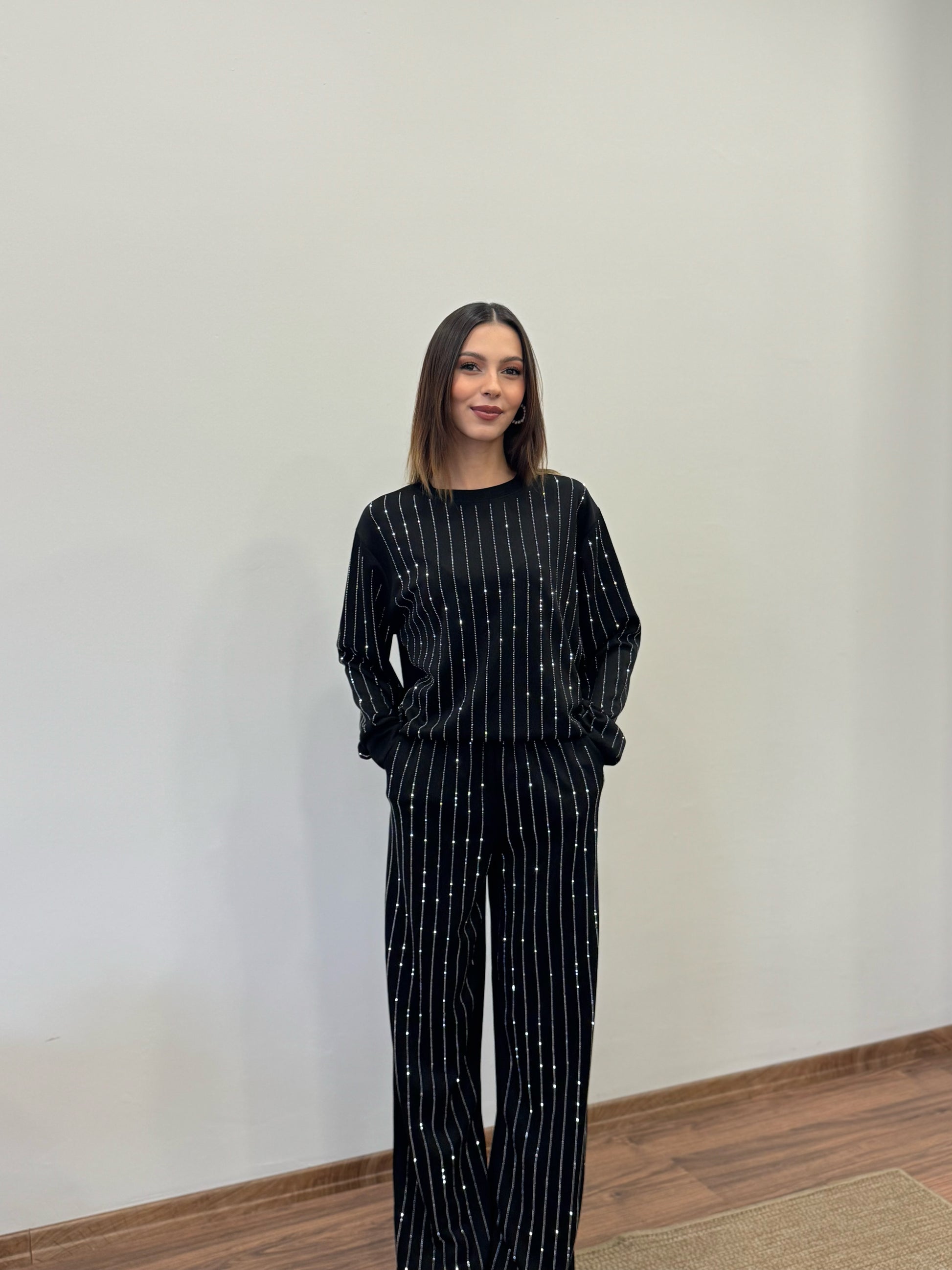 Star Set Bluz Pantolon Siyah Taşlı Takım