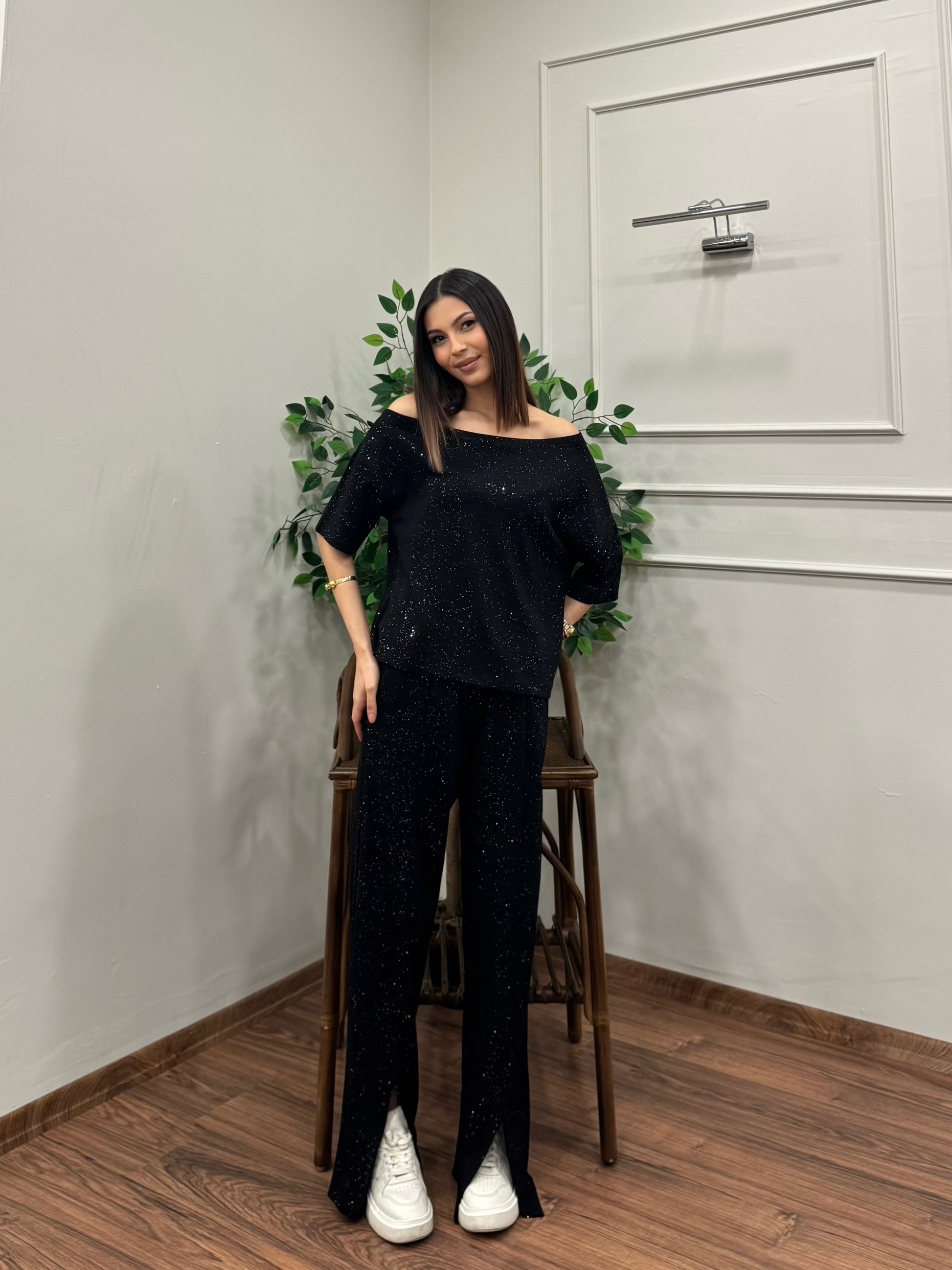 İndirim 28%Star Set Bluz Pantolon Siyah Taşlı Takım