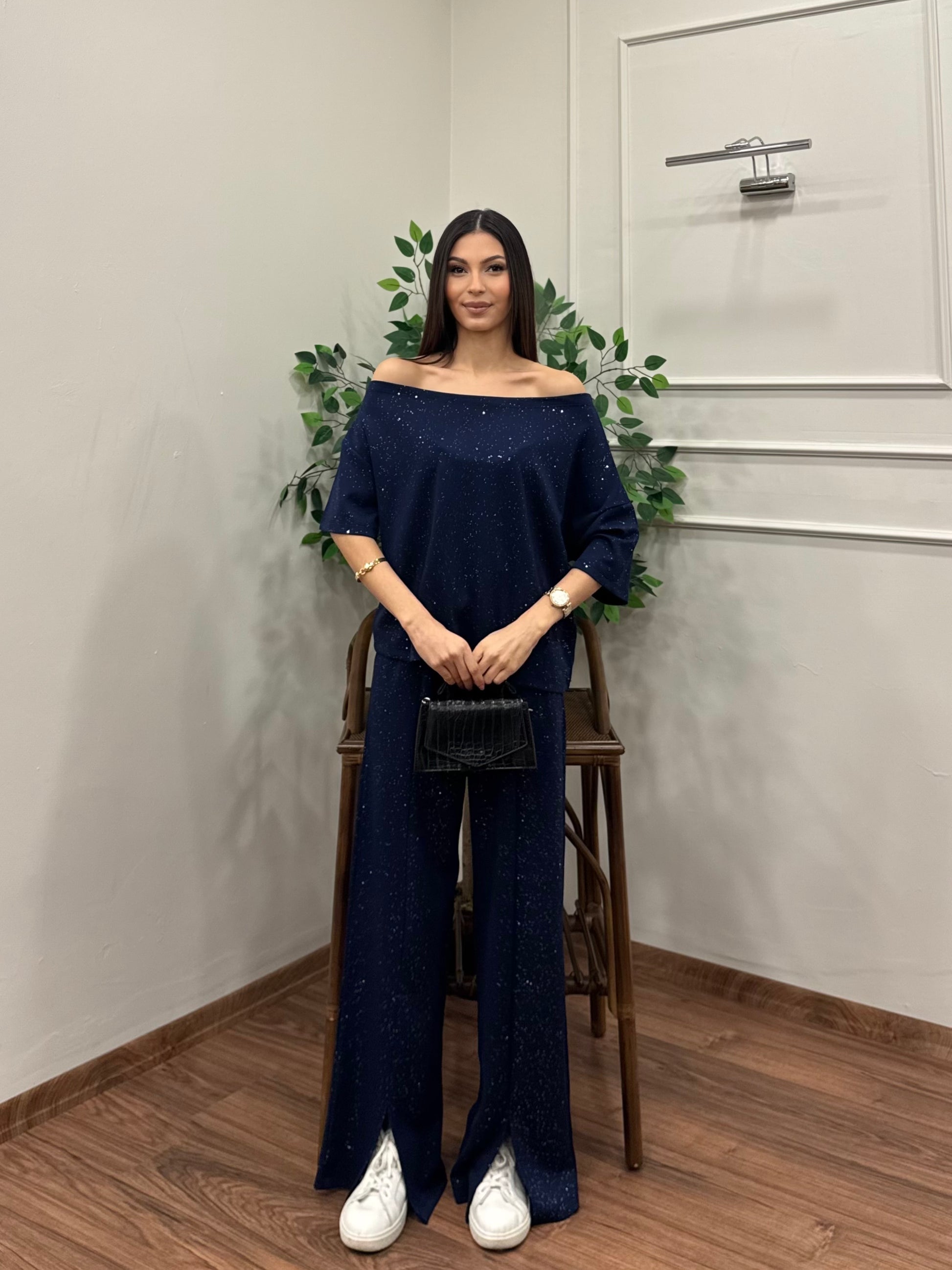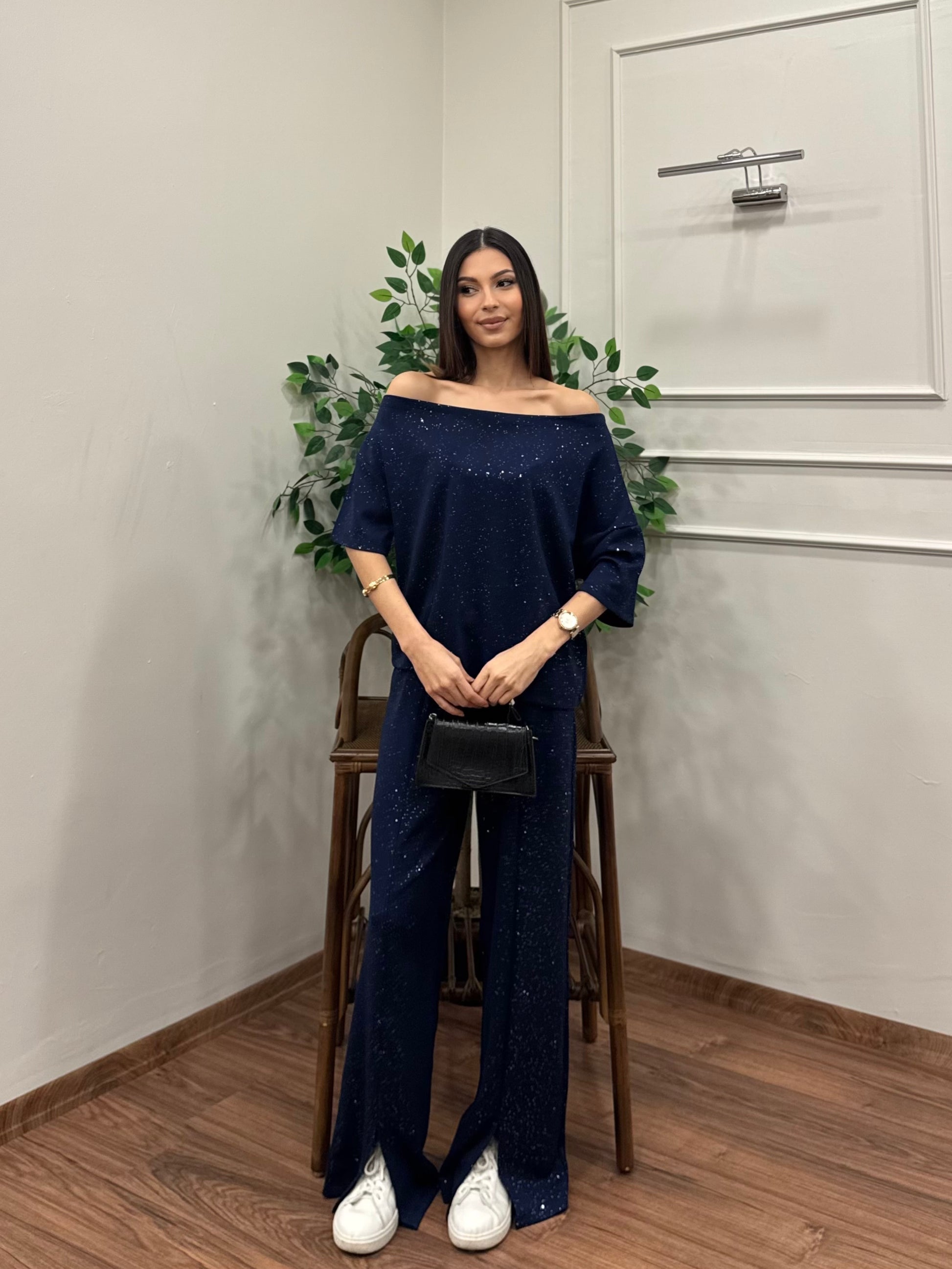 İndirim 28%Star Set Bluz Pantolon Lacivert Taşlı Takım