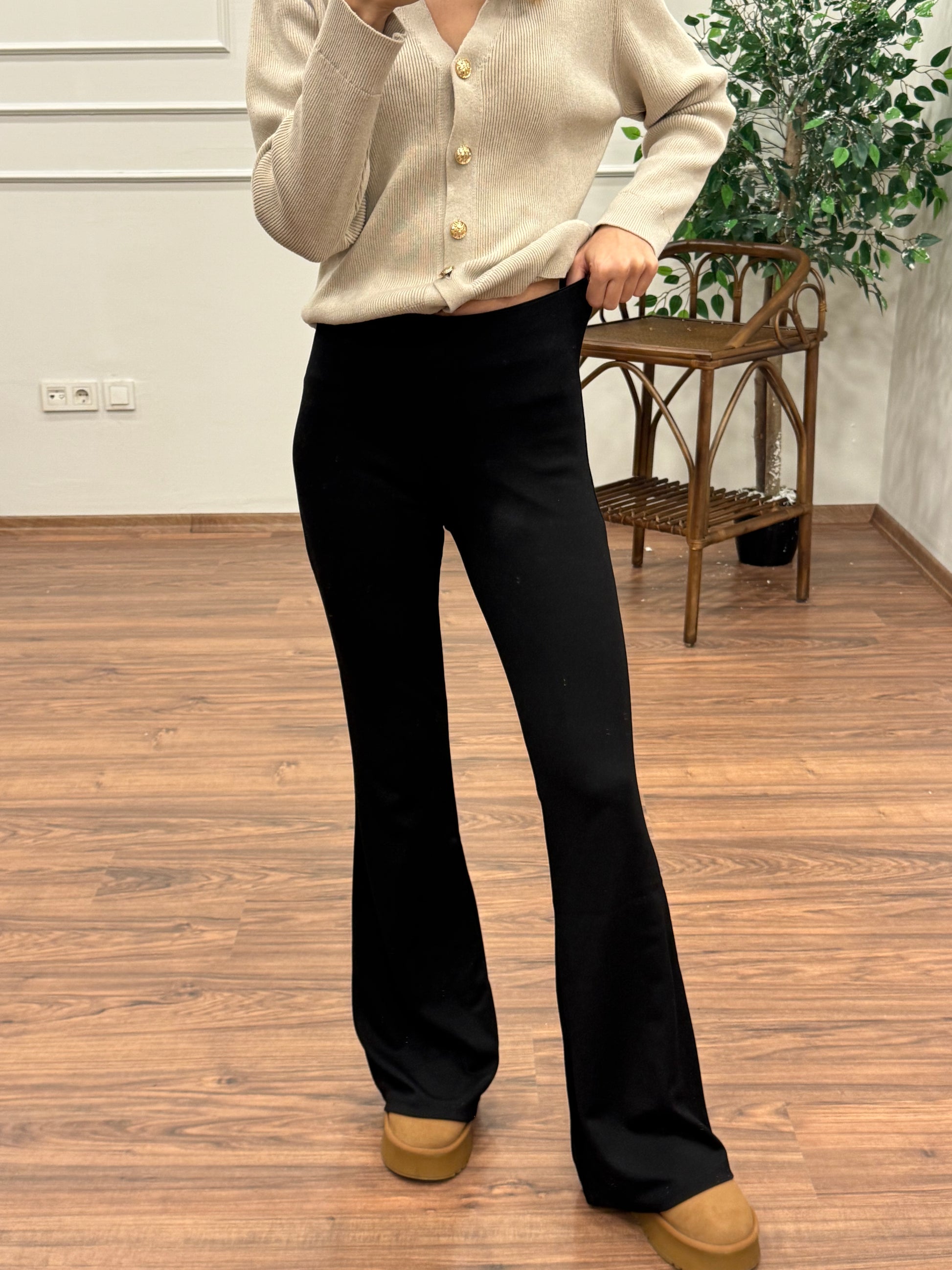 İspanyol Bel Lastikli Siyah Çelik Tayt