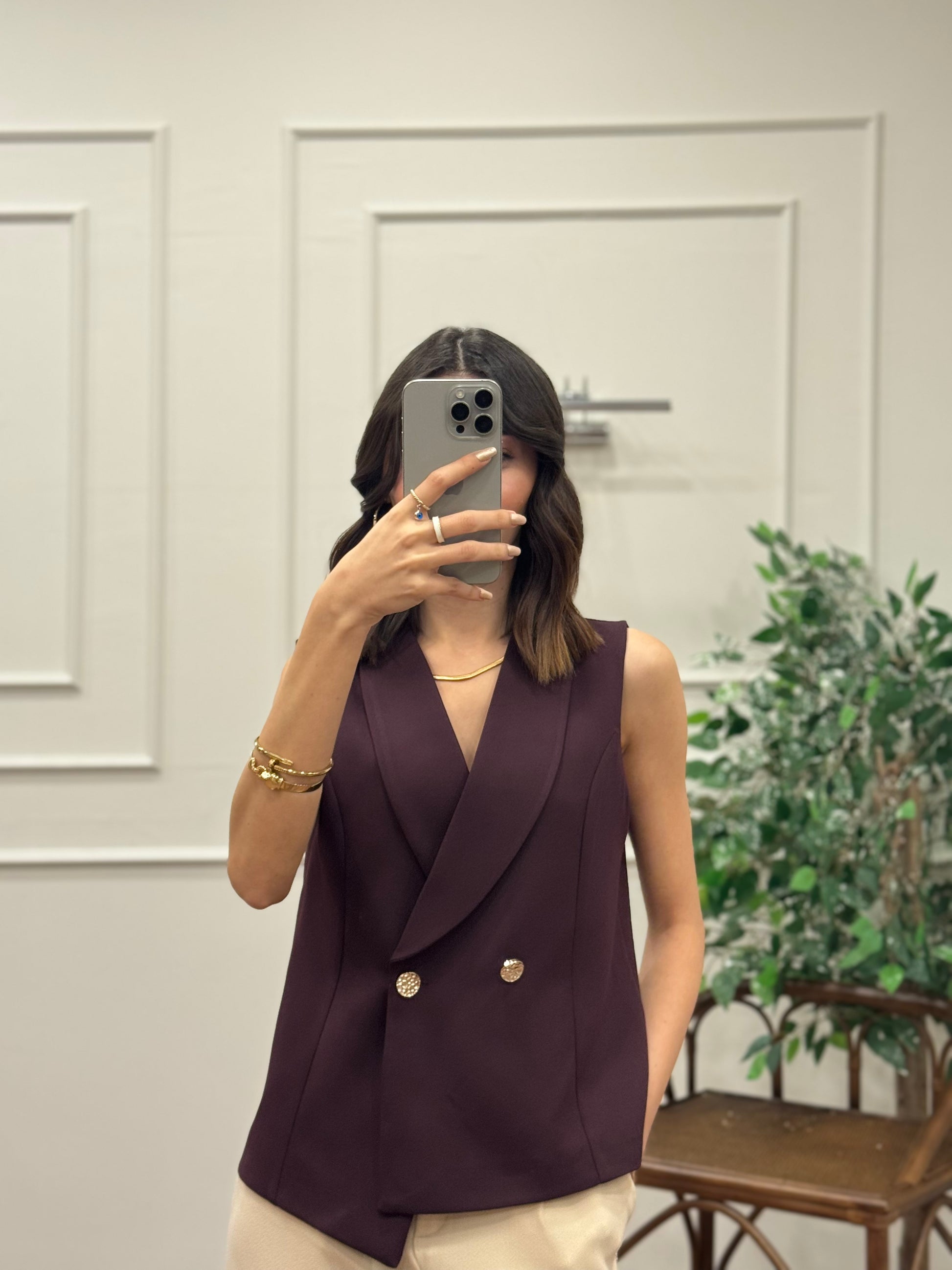 Layla Premium Asimetrik Kesim Mürdüm Yelek