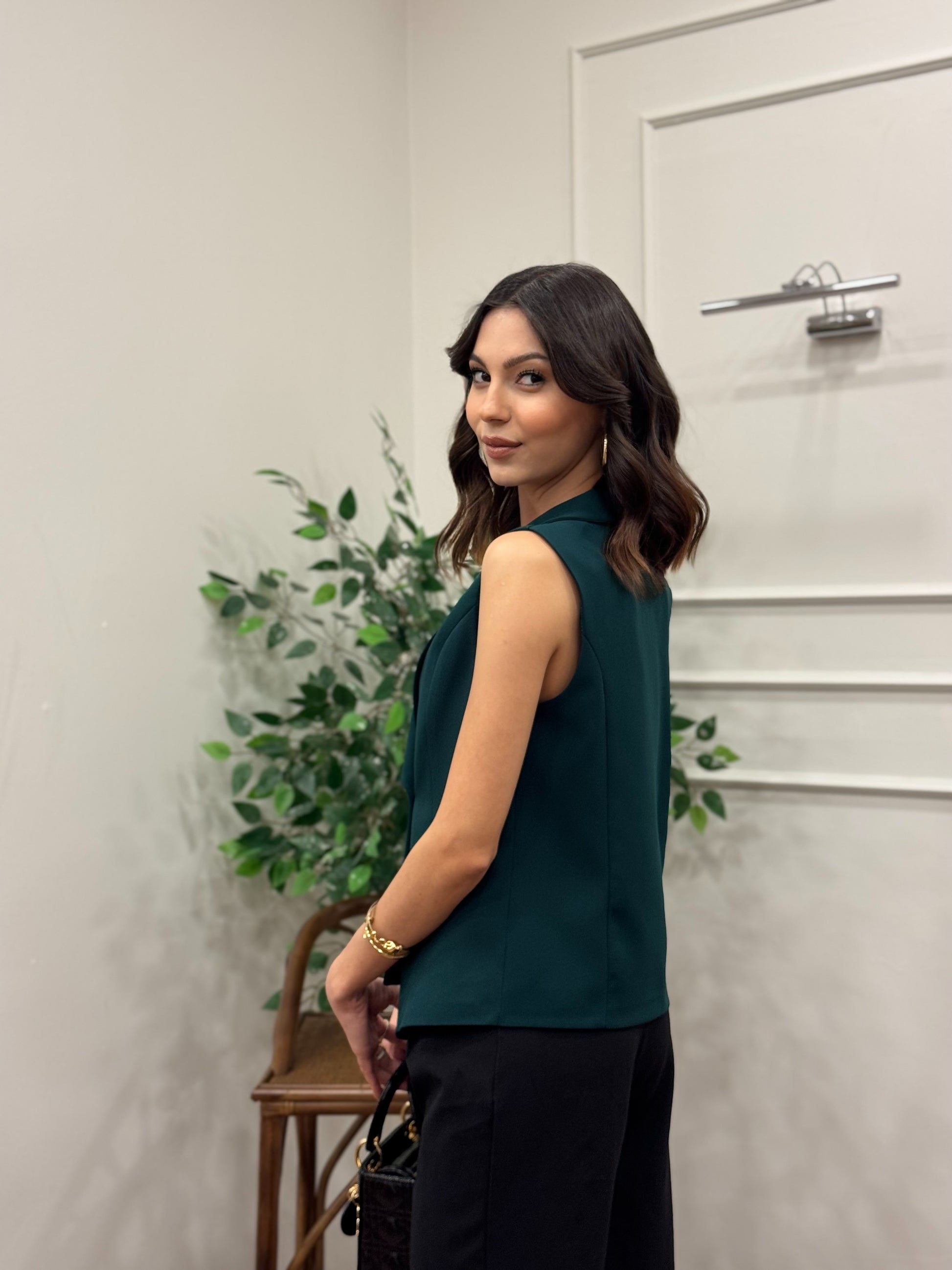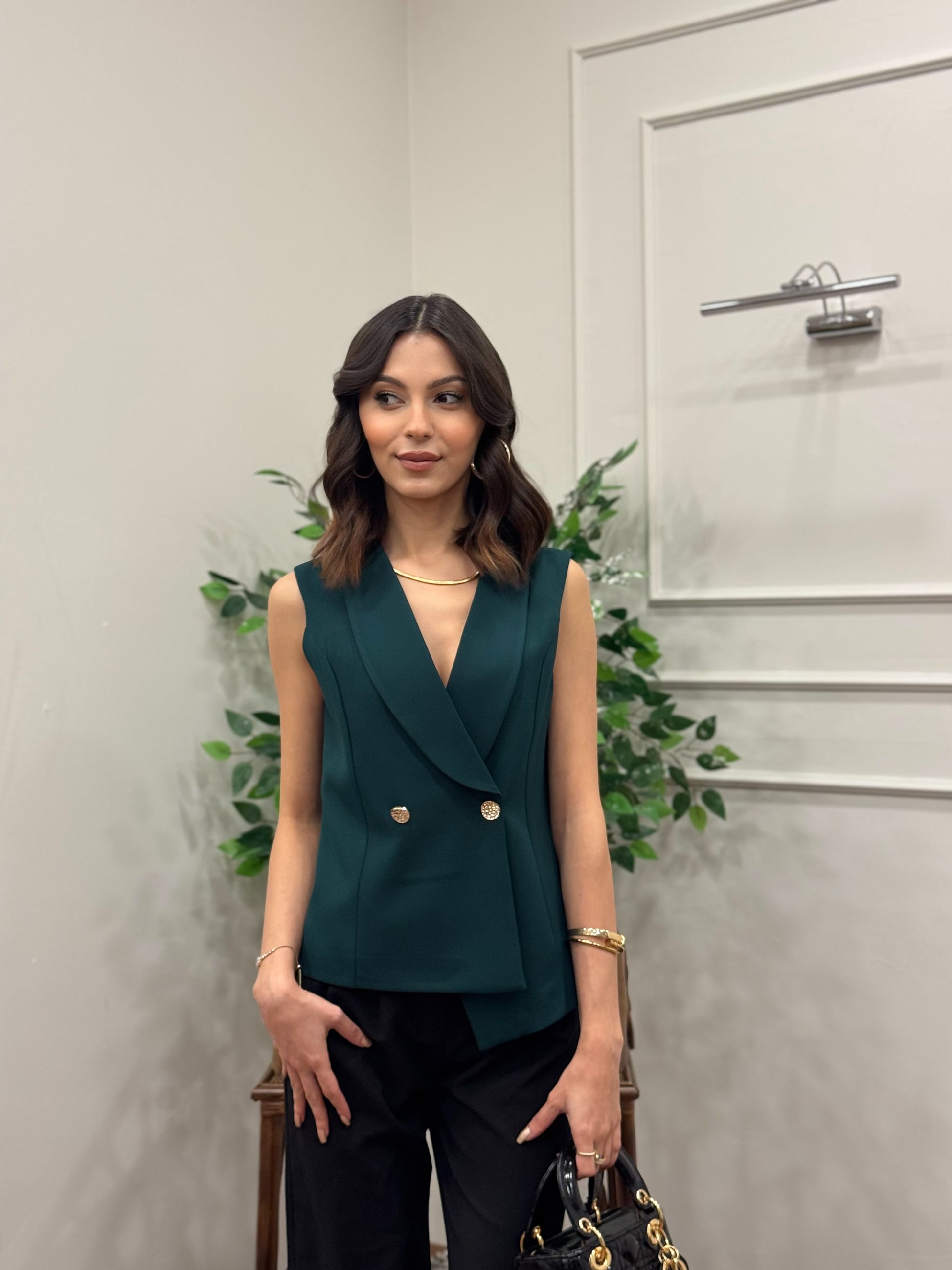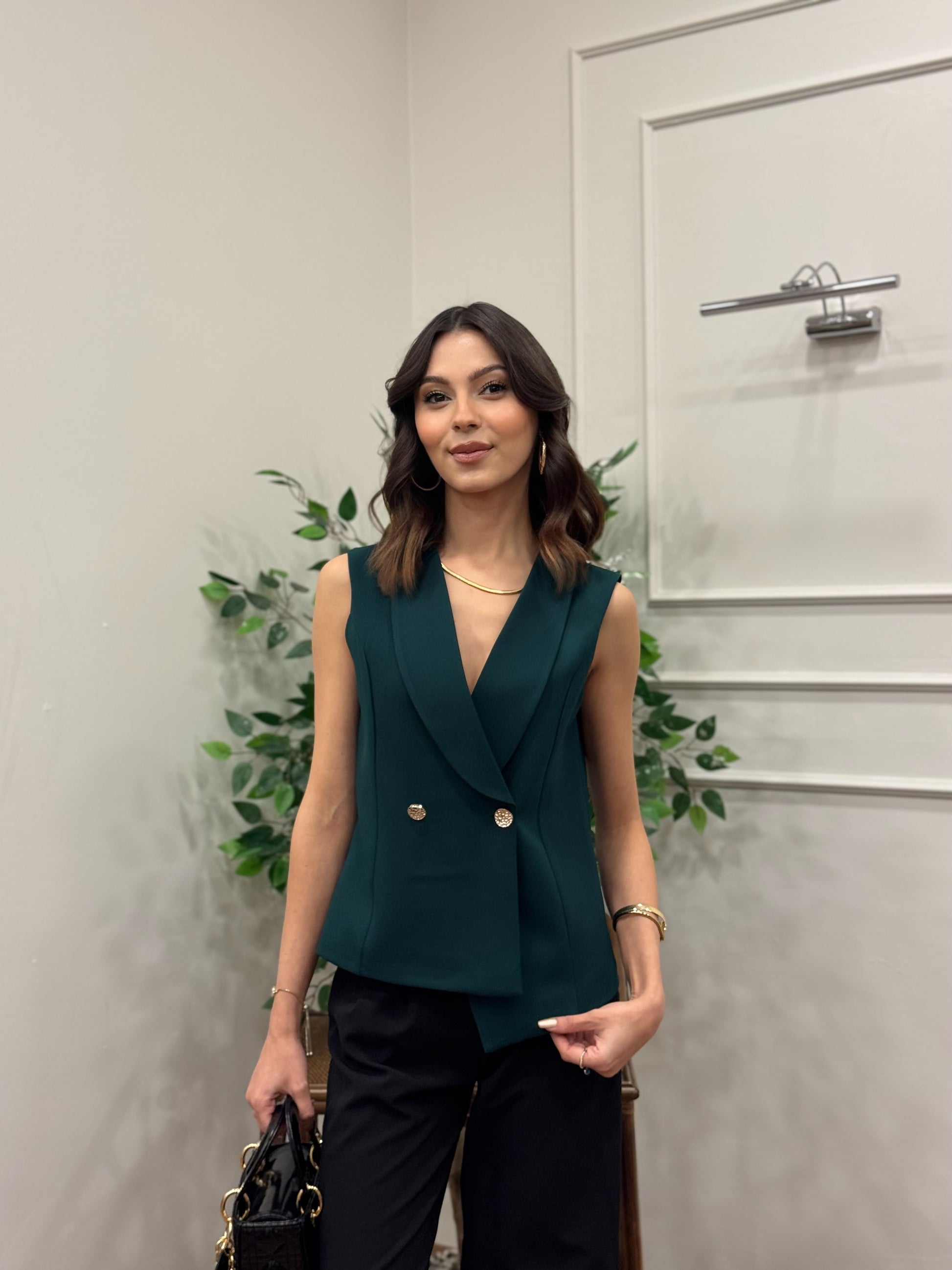 Layla Premium Asimetrik Kesim Yeşil Yelek