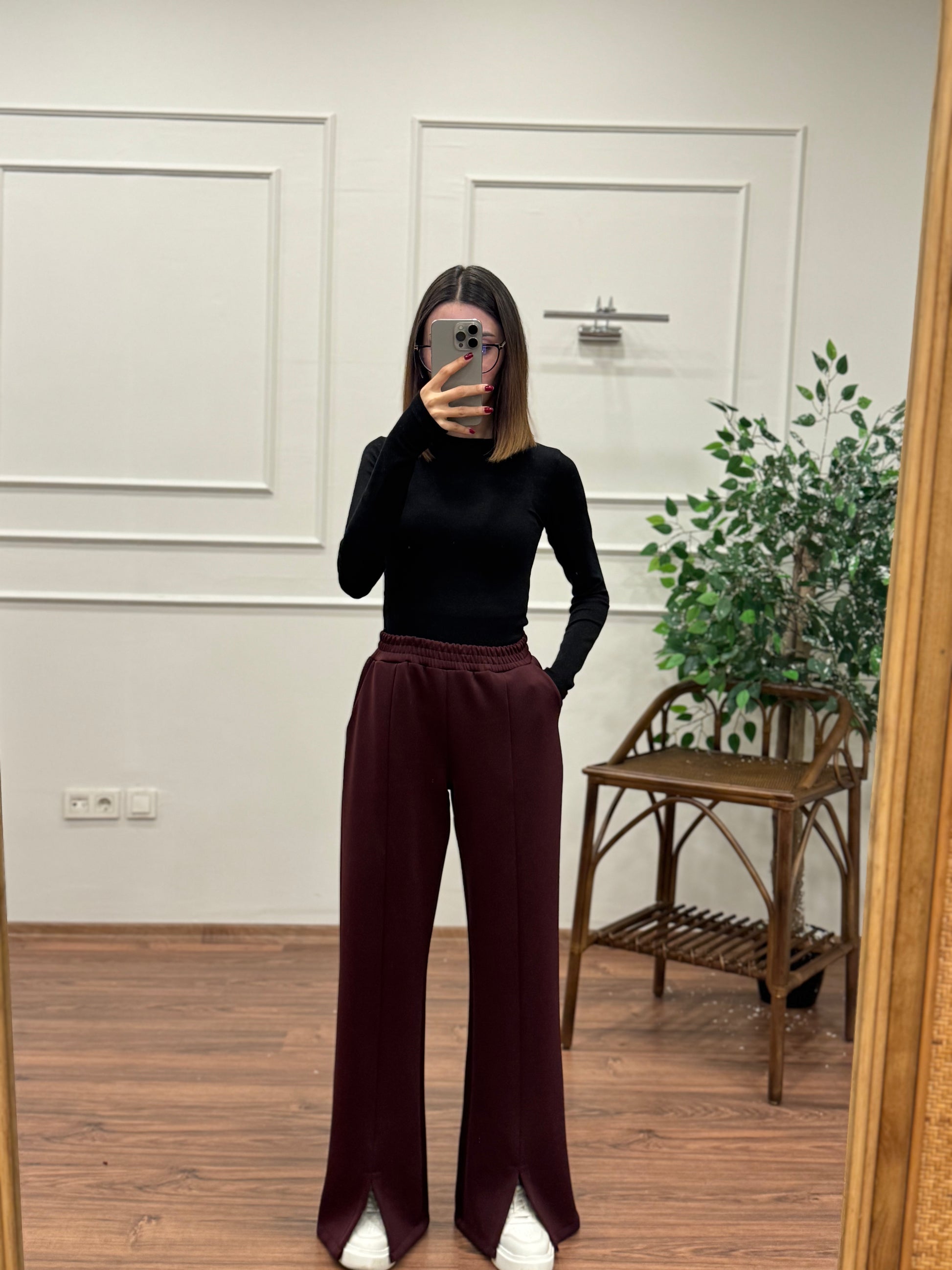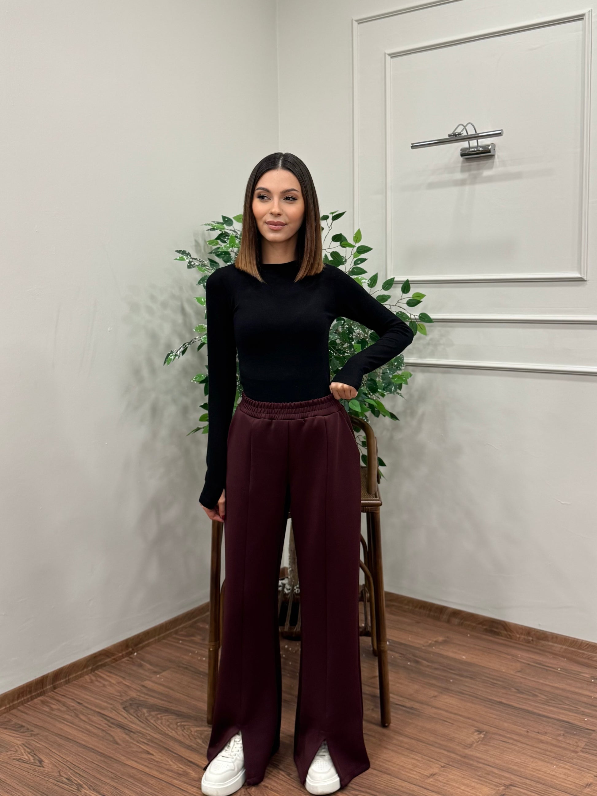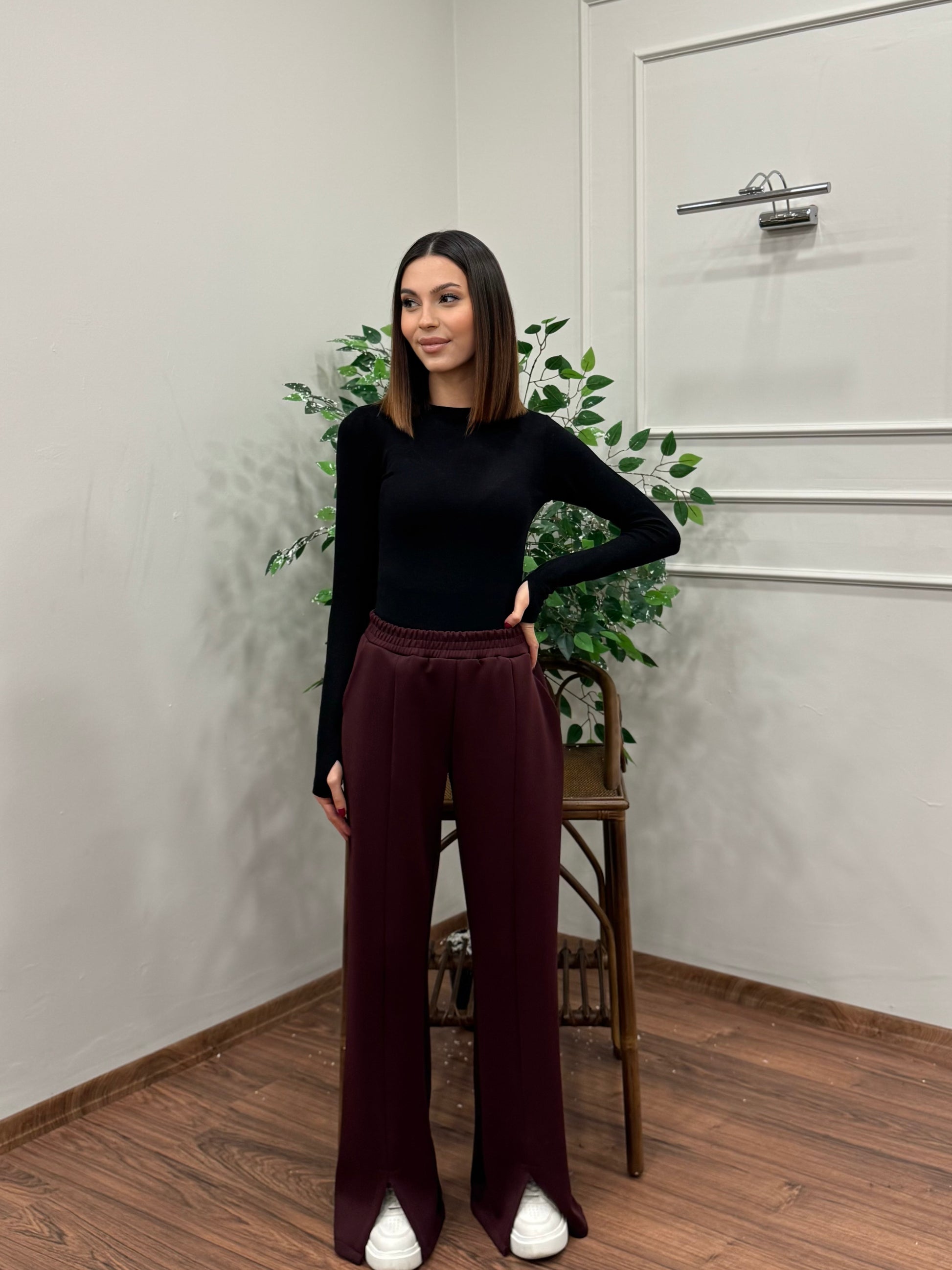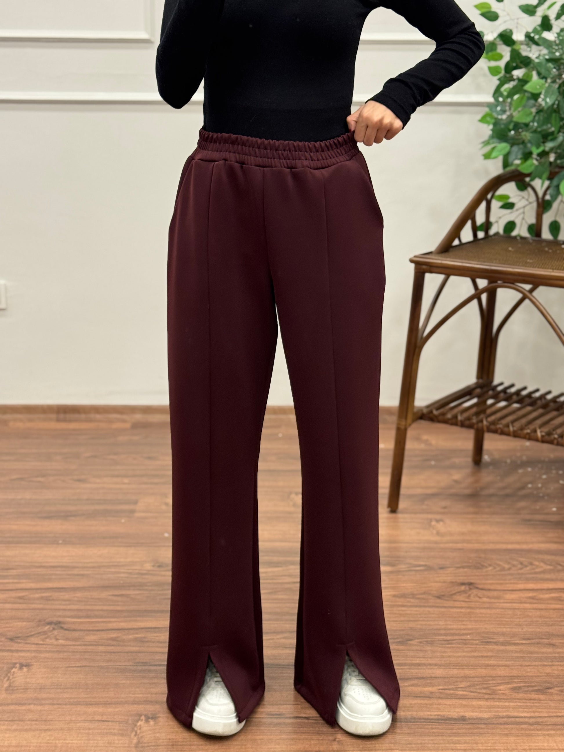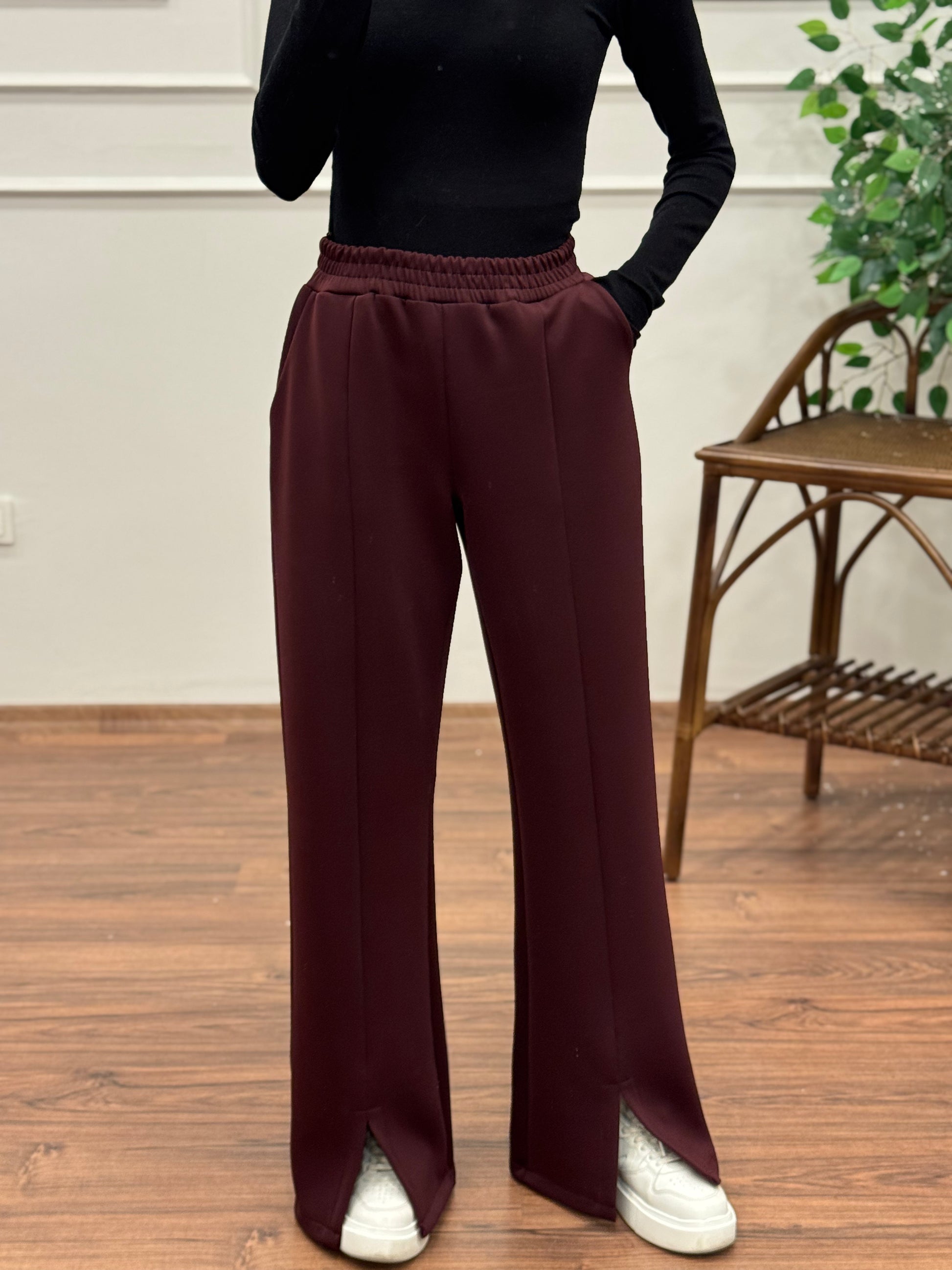 Megi Scuba Yırtmaç Detay Bordo Pantolon