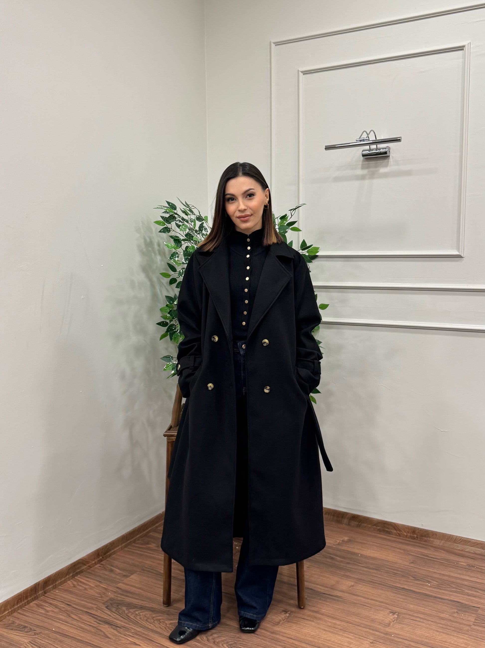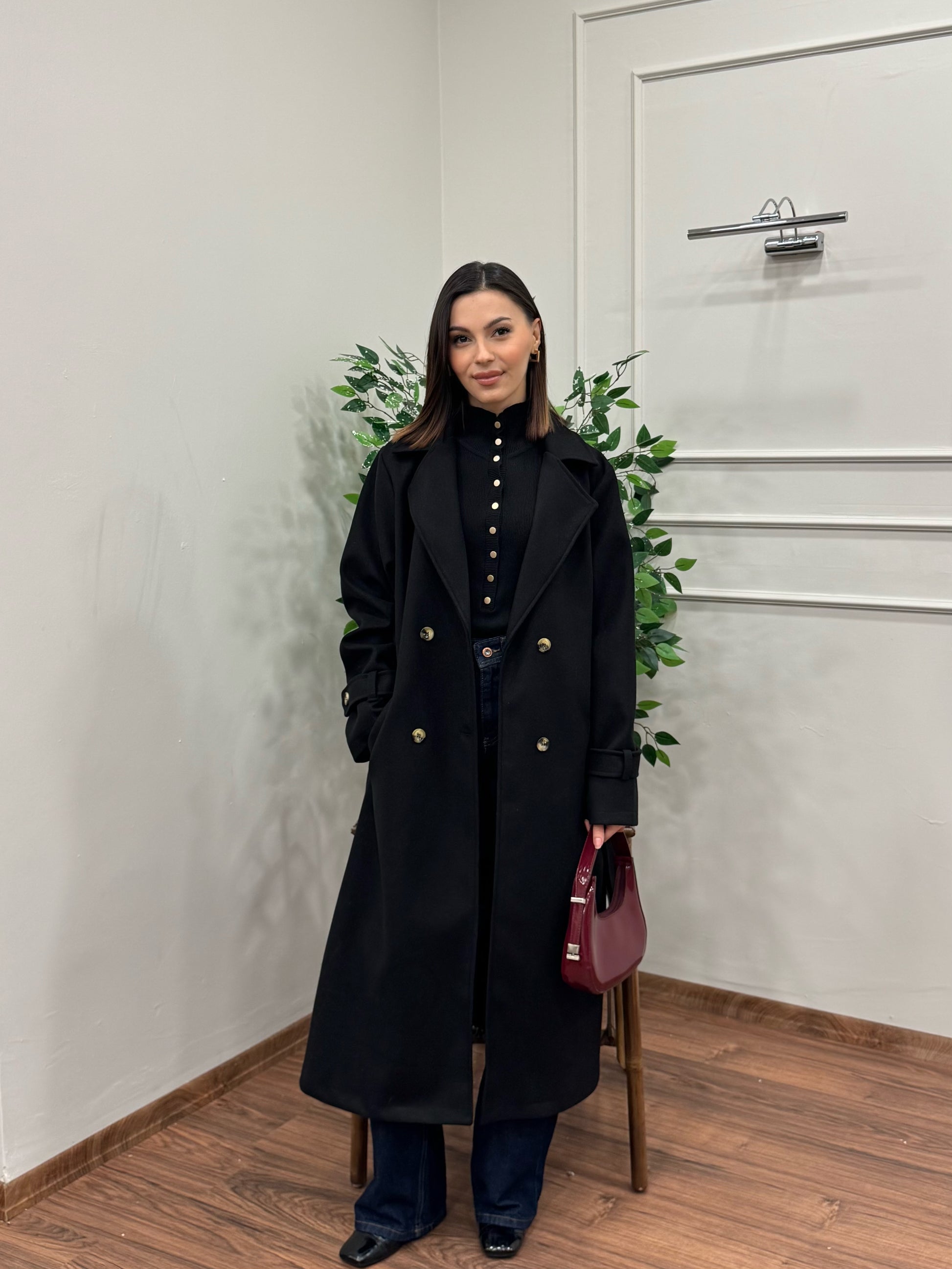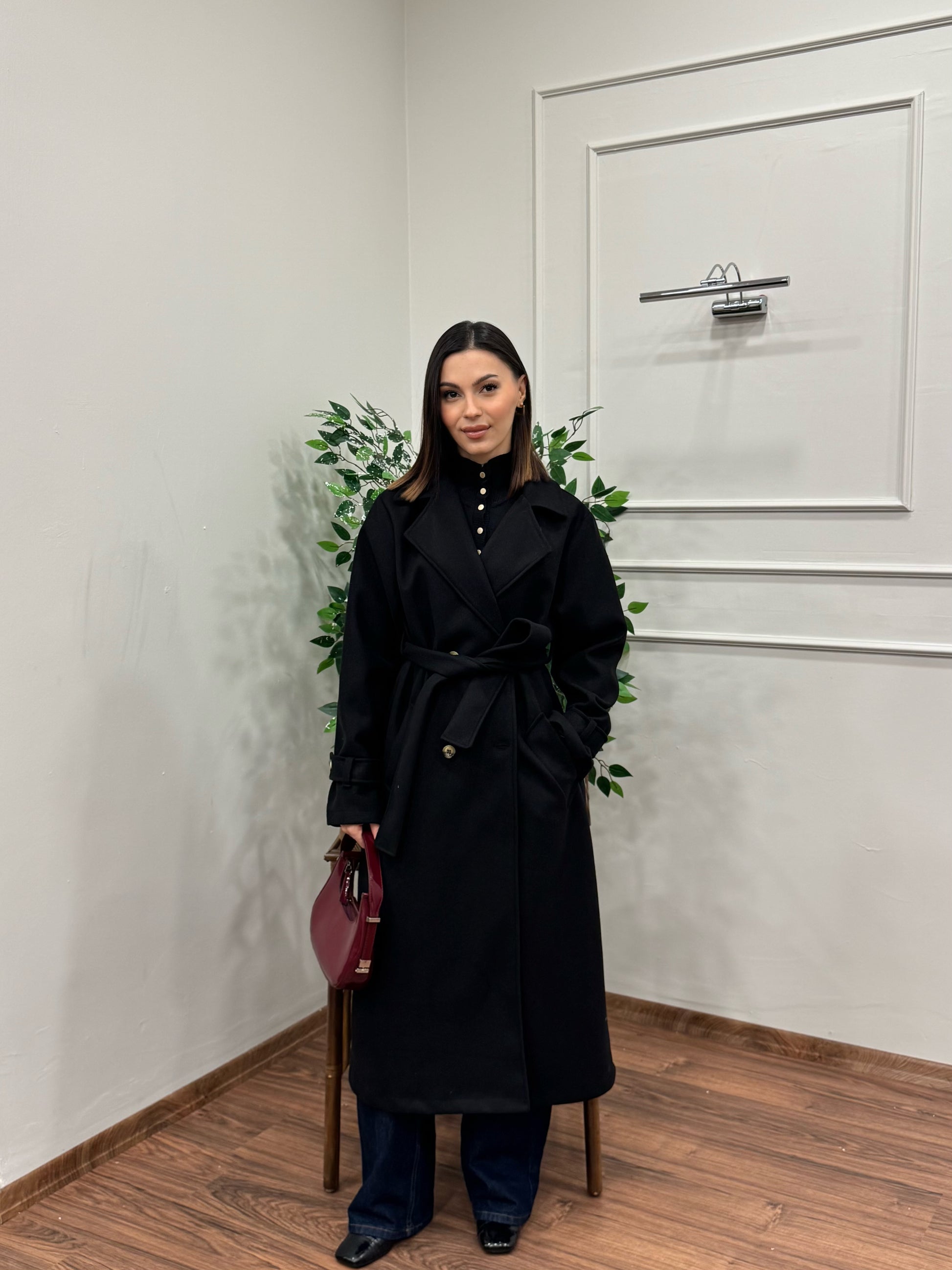 İndirim 17%Merlin Astarlı Siyah Kaşe Kaban