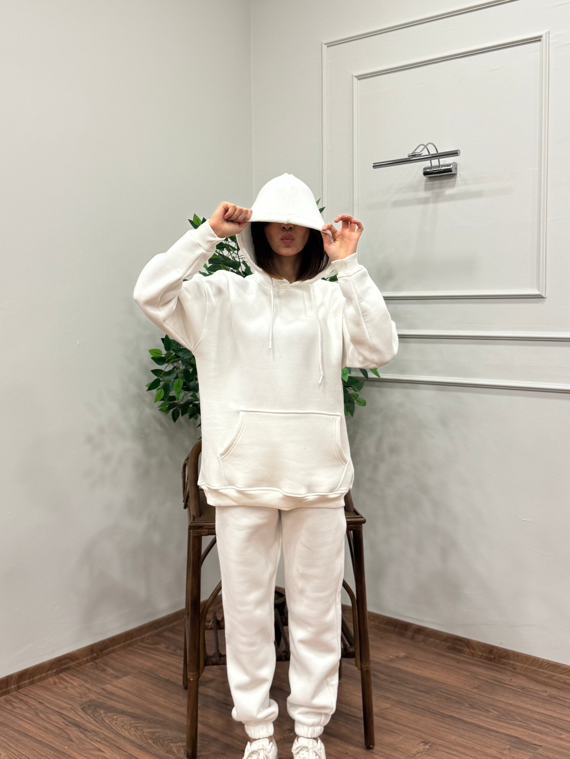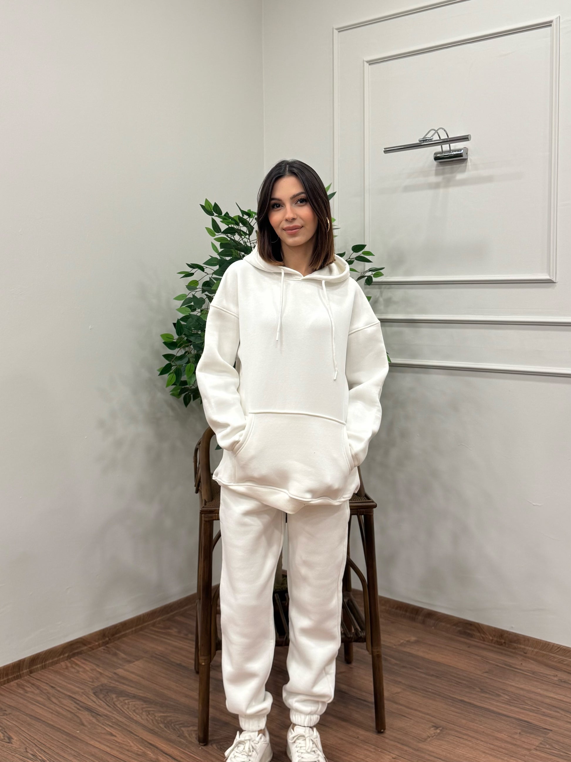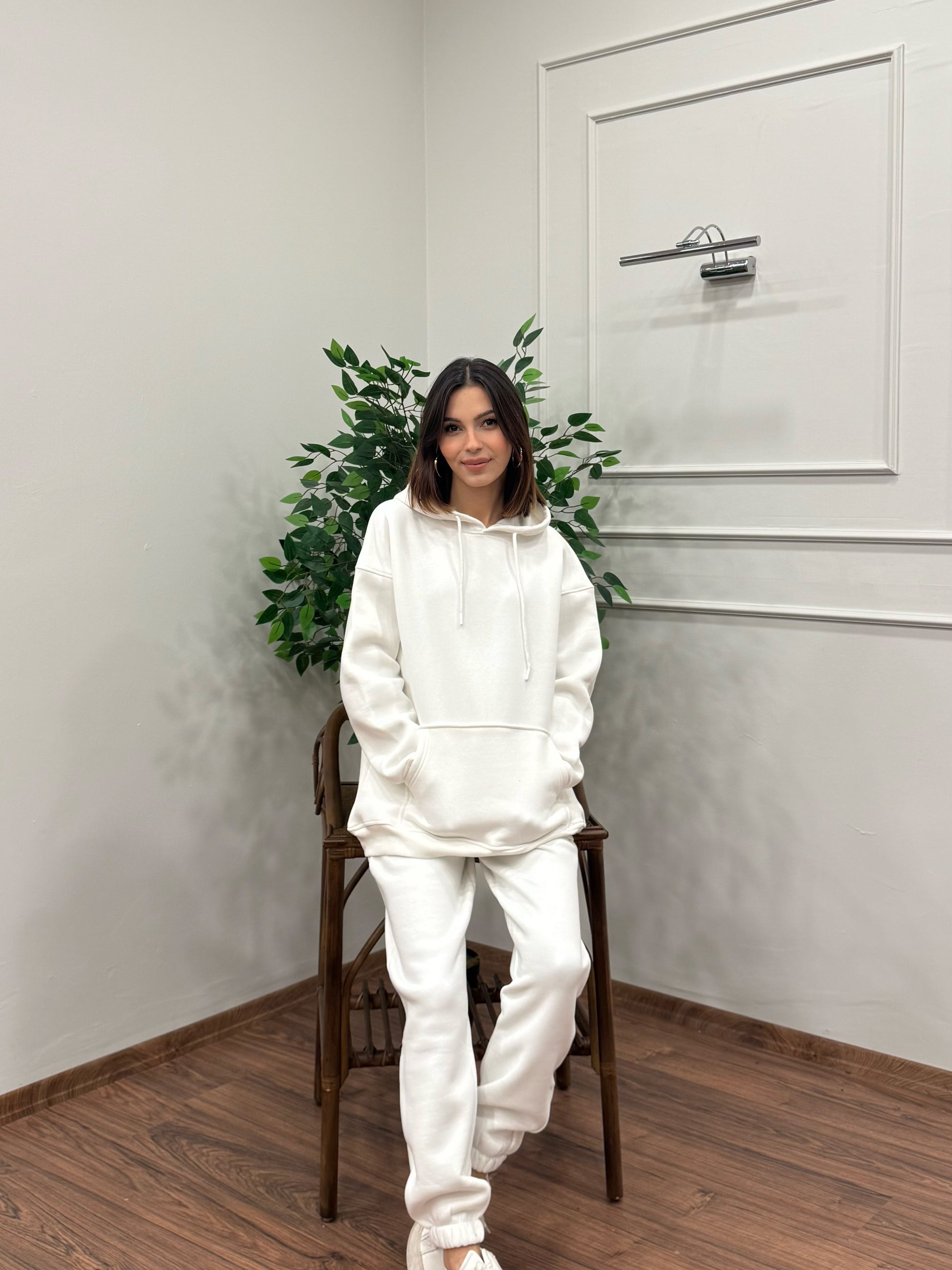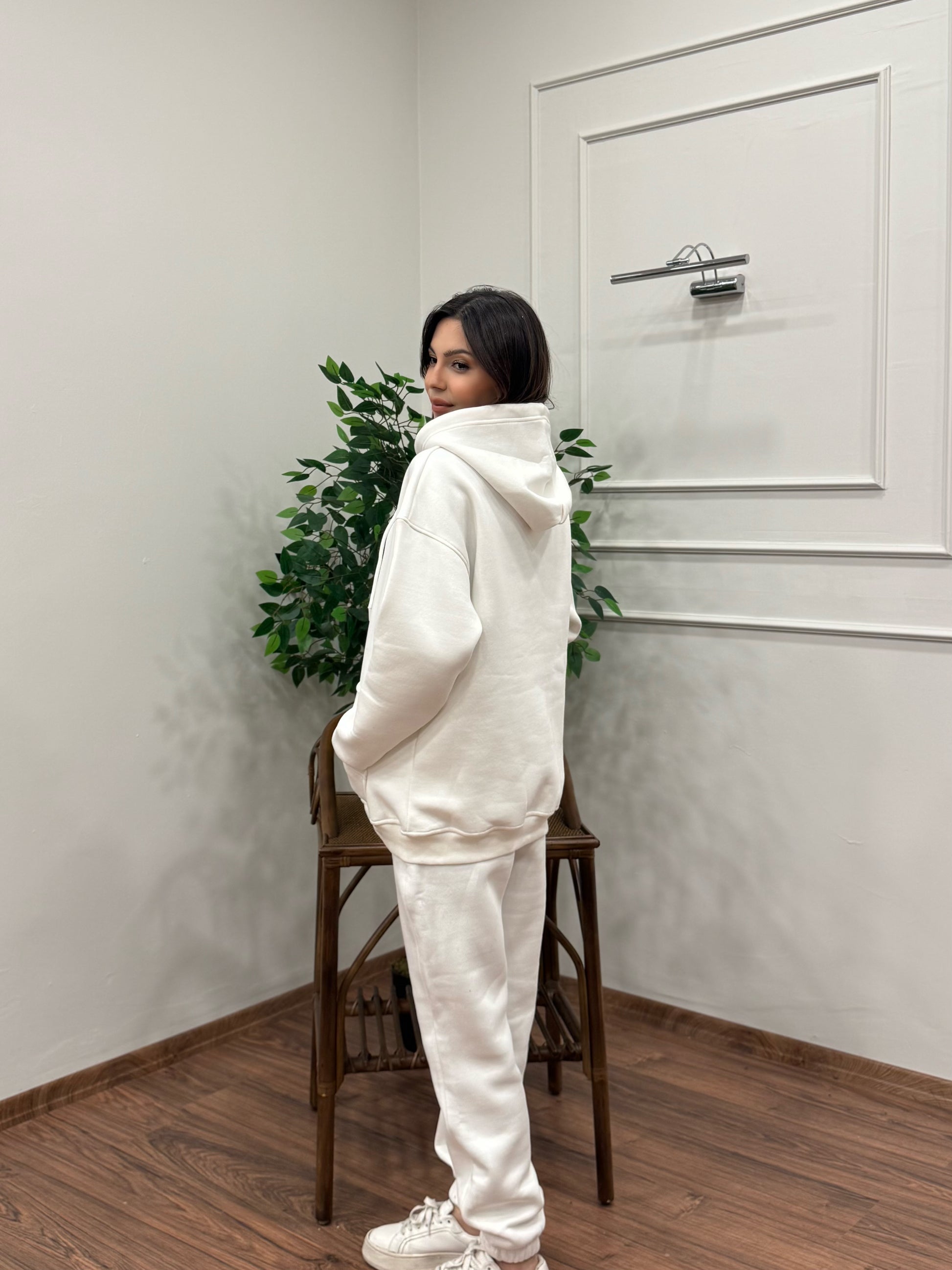Miley Kapüşonlu Beyaz Eşofman Takımı