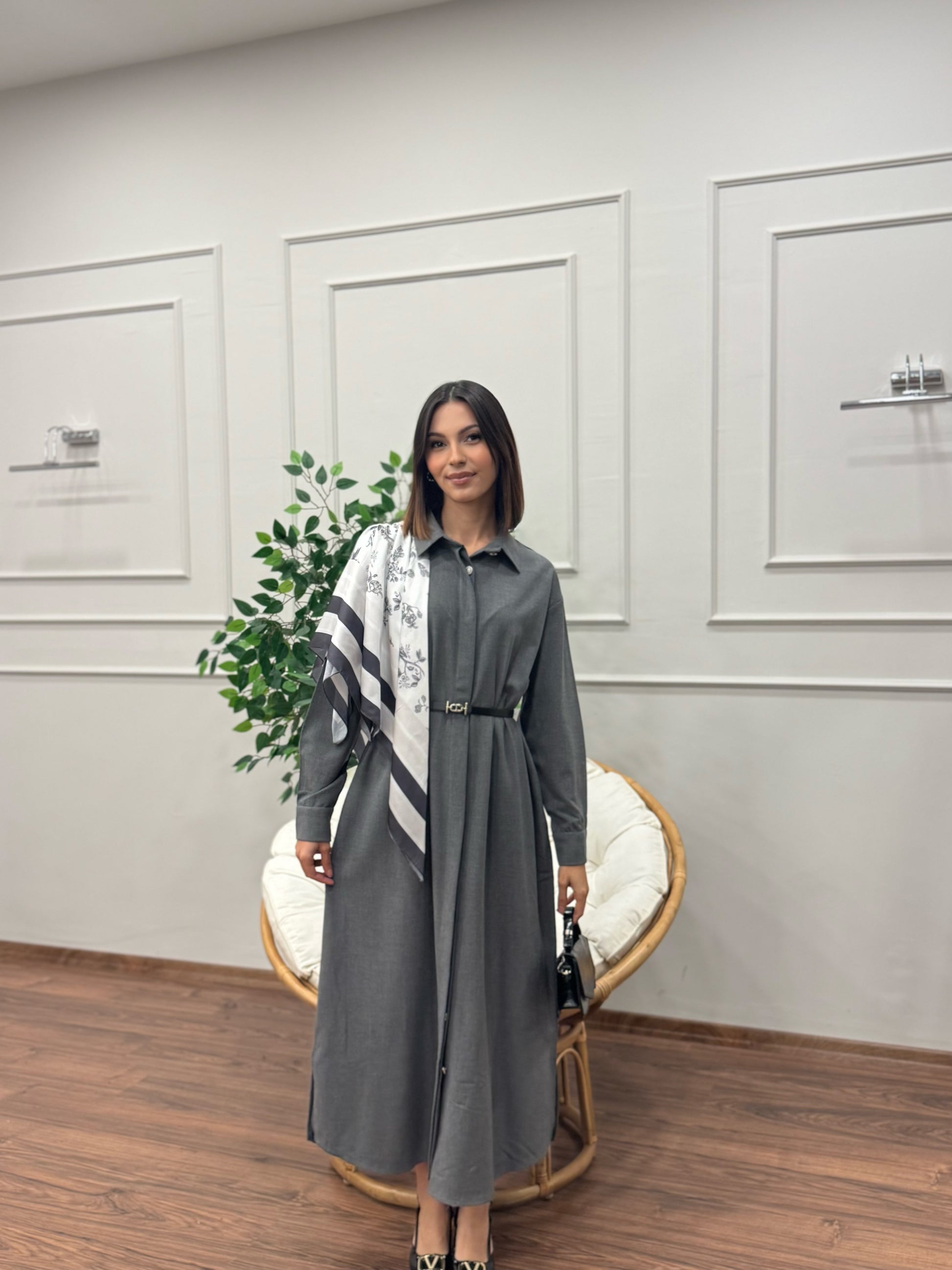 Gagari Kumaş Geniş Kesim Gri Pantolon
