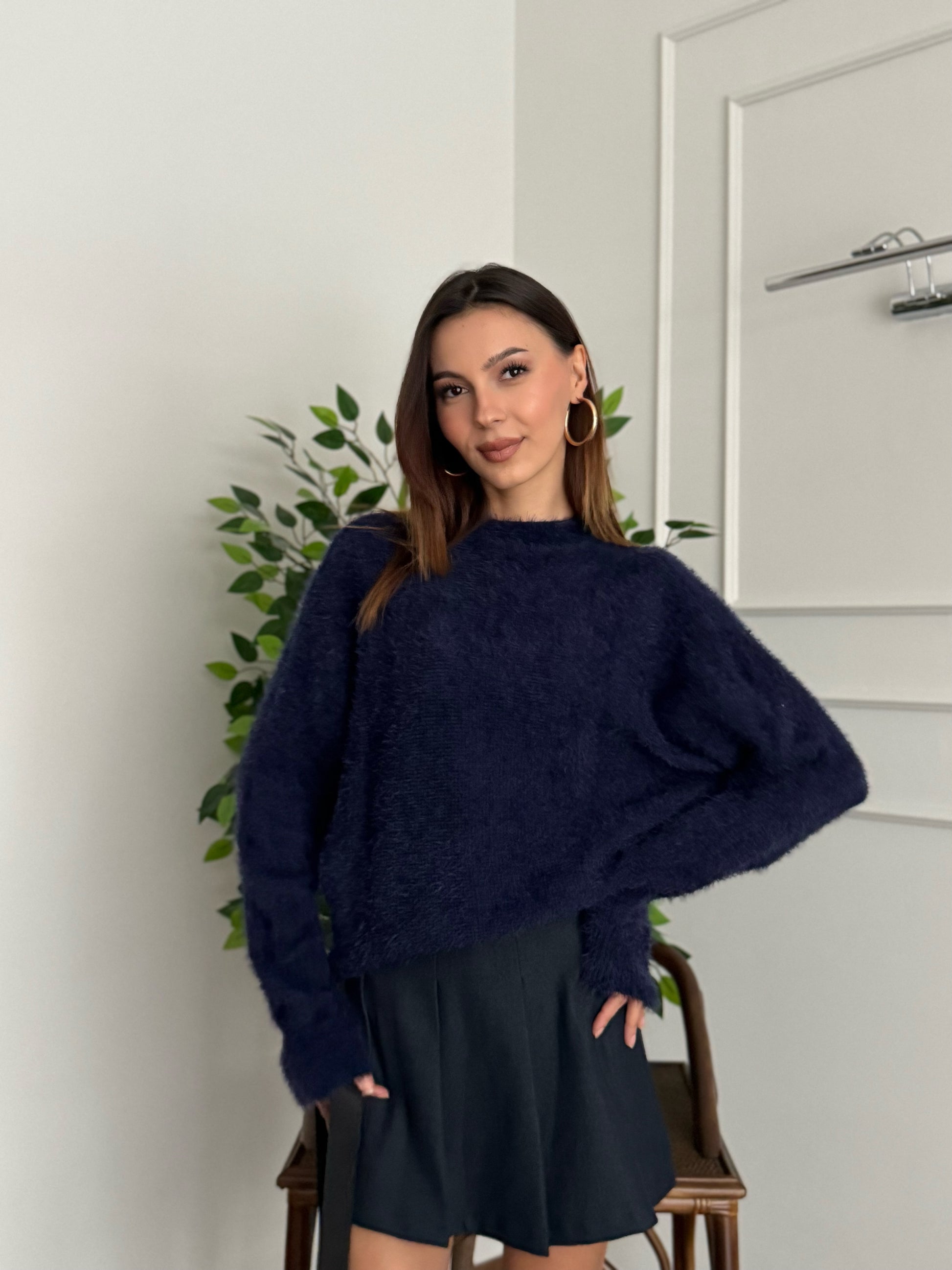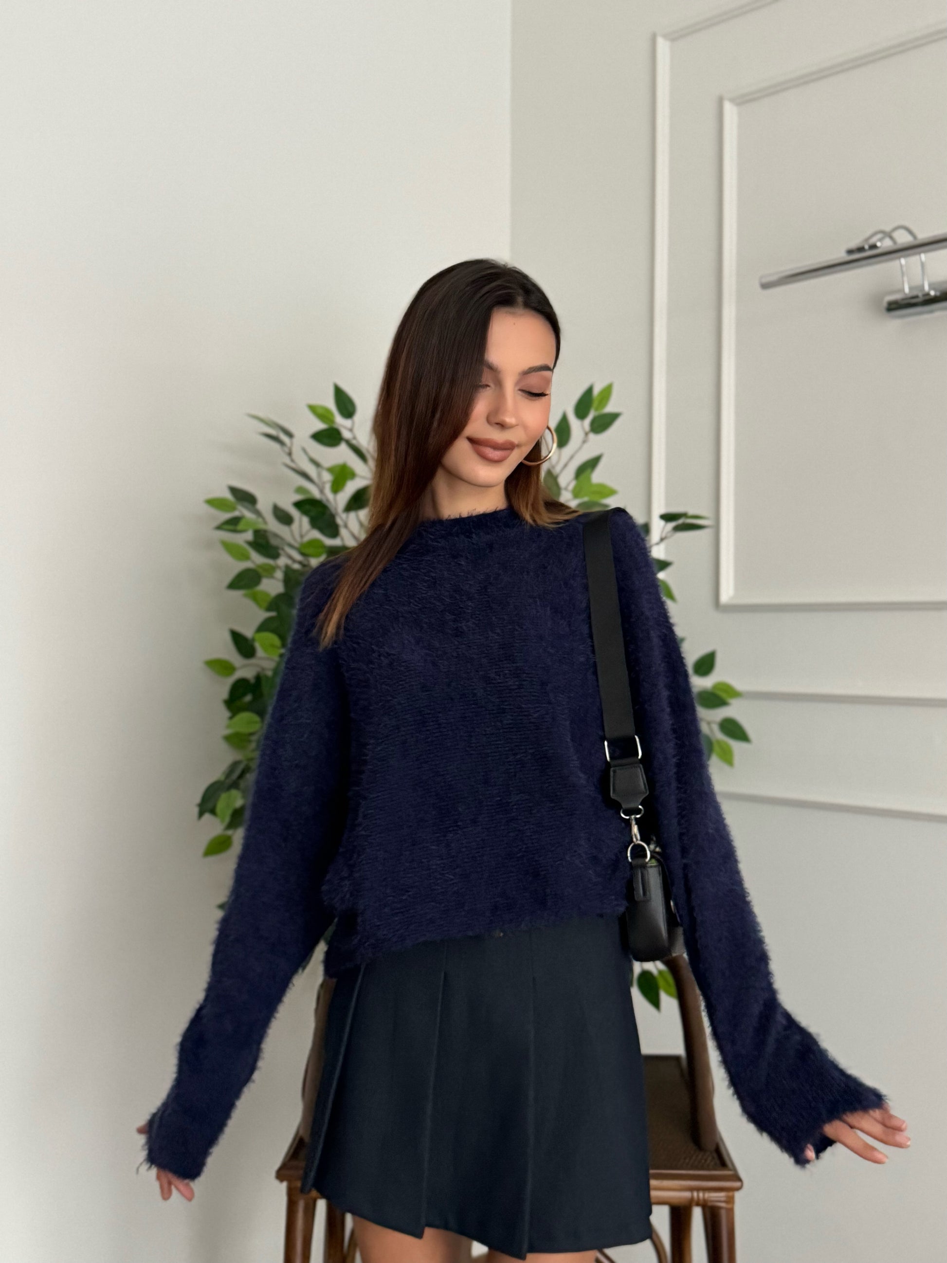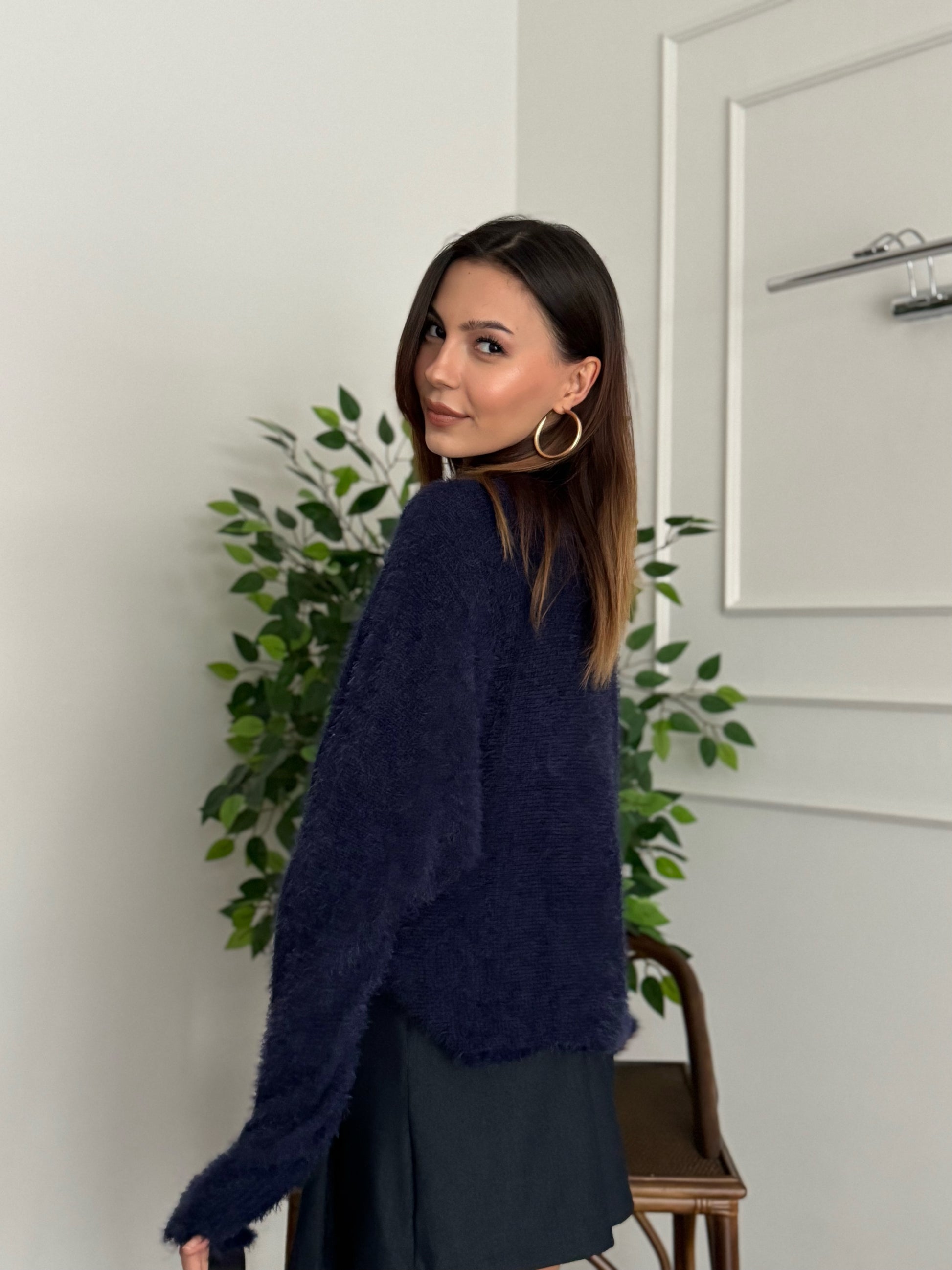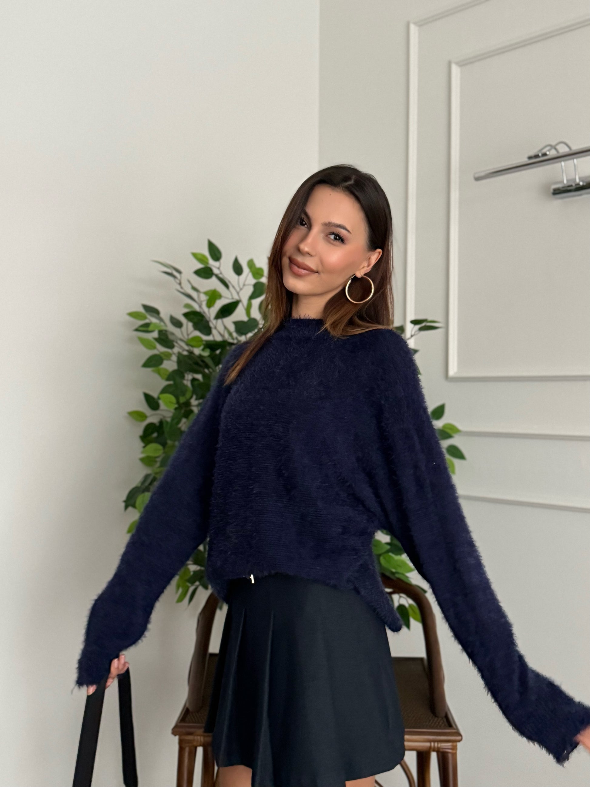 Sakallı Yarasa Kol Lacivert Kazak