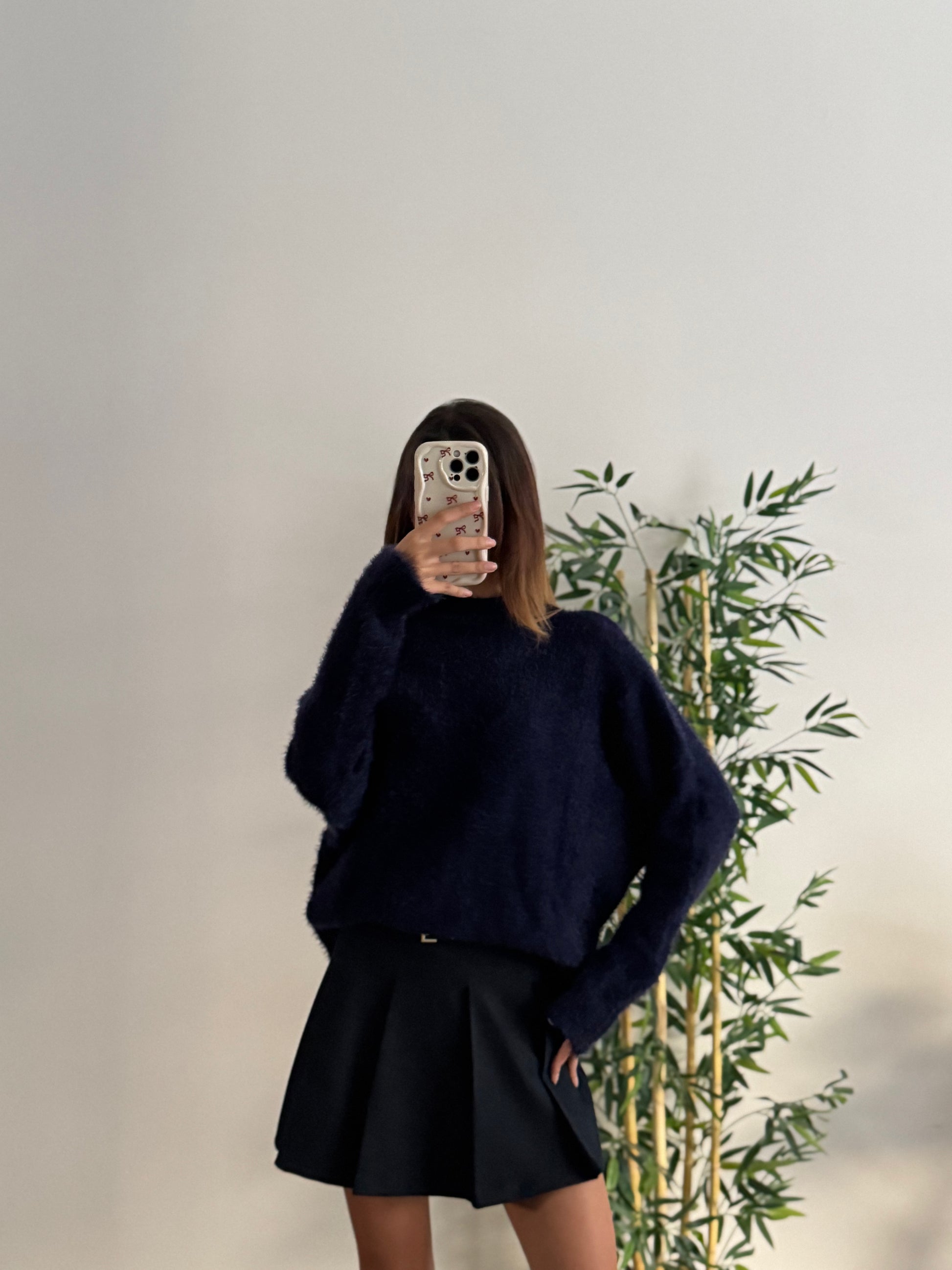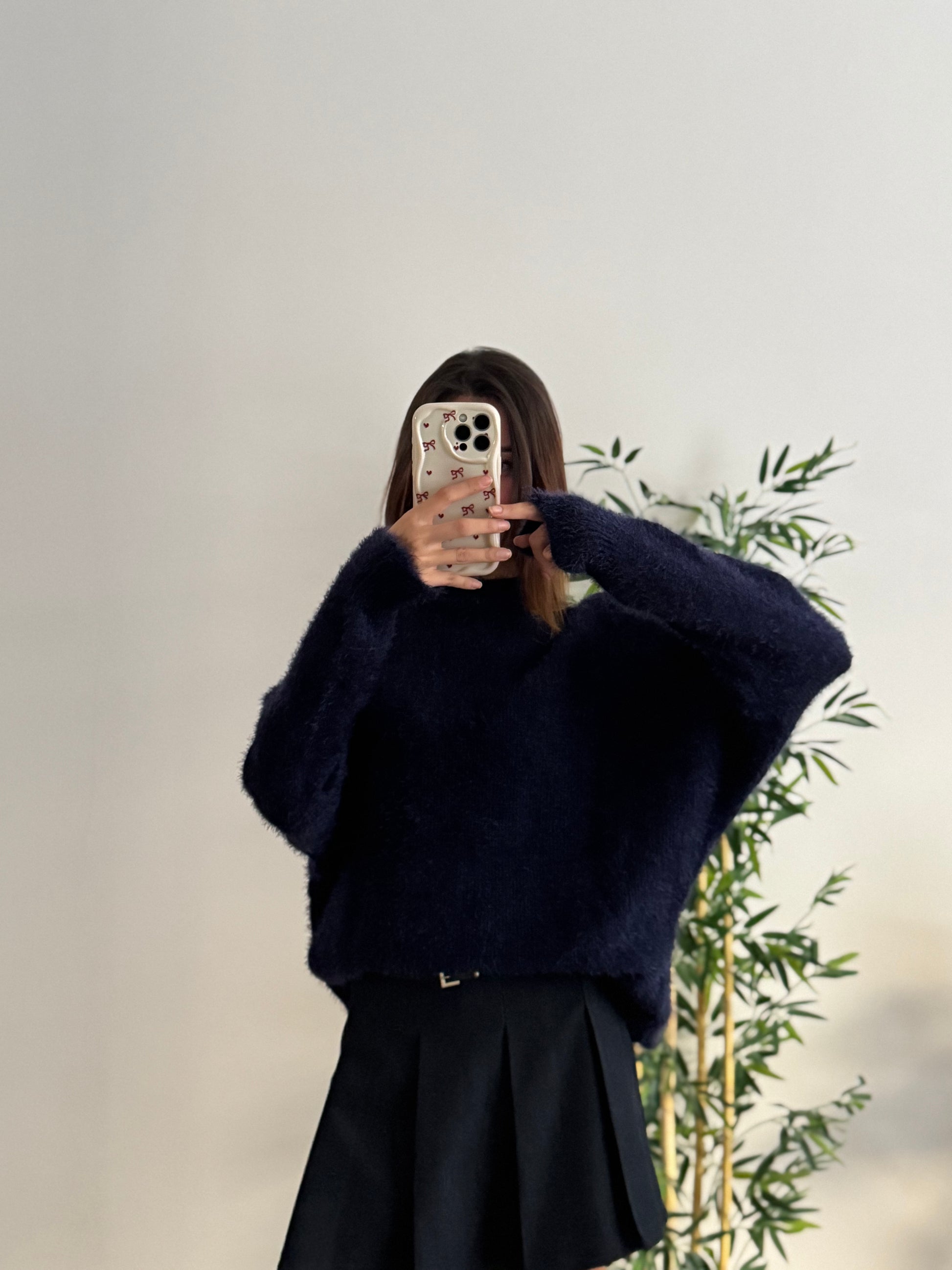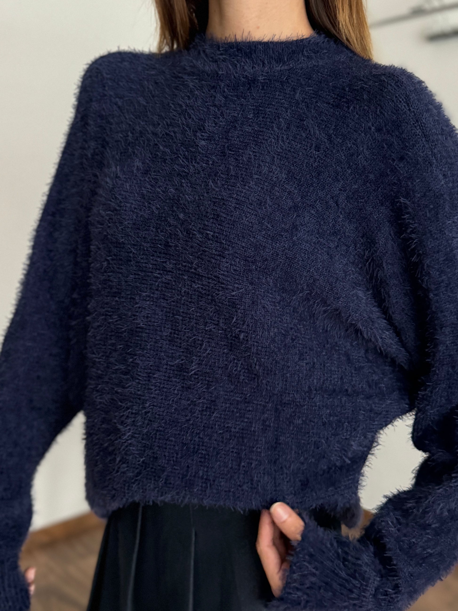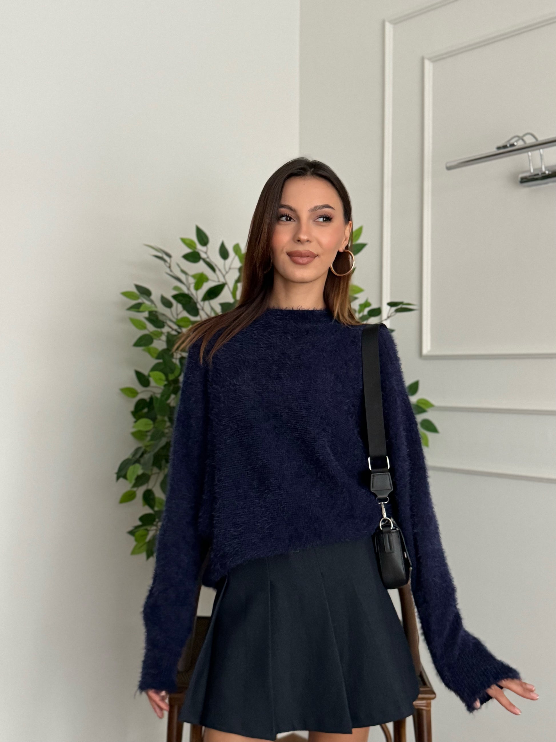 Sakallı Yarasa Kol Lacivert Kazak
