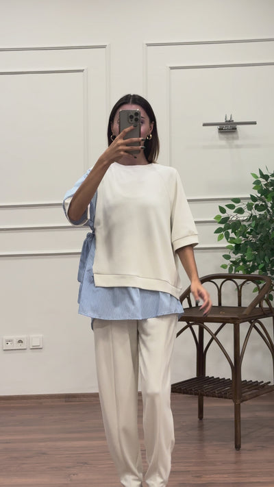 Tunik Pantolon Beyaz İkili Takım