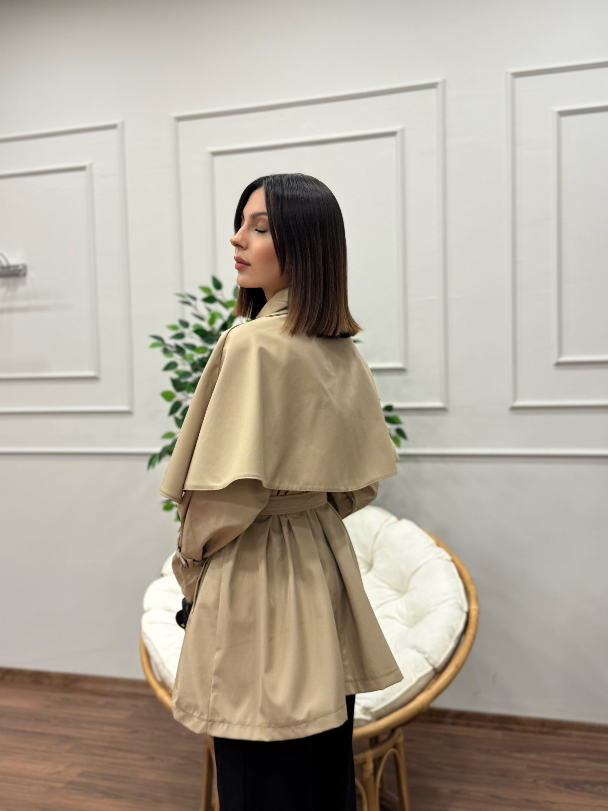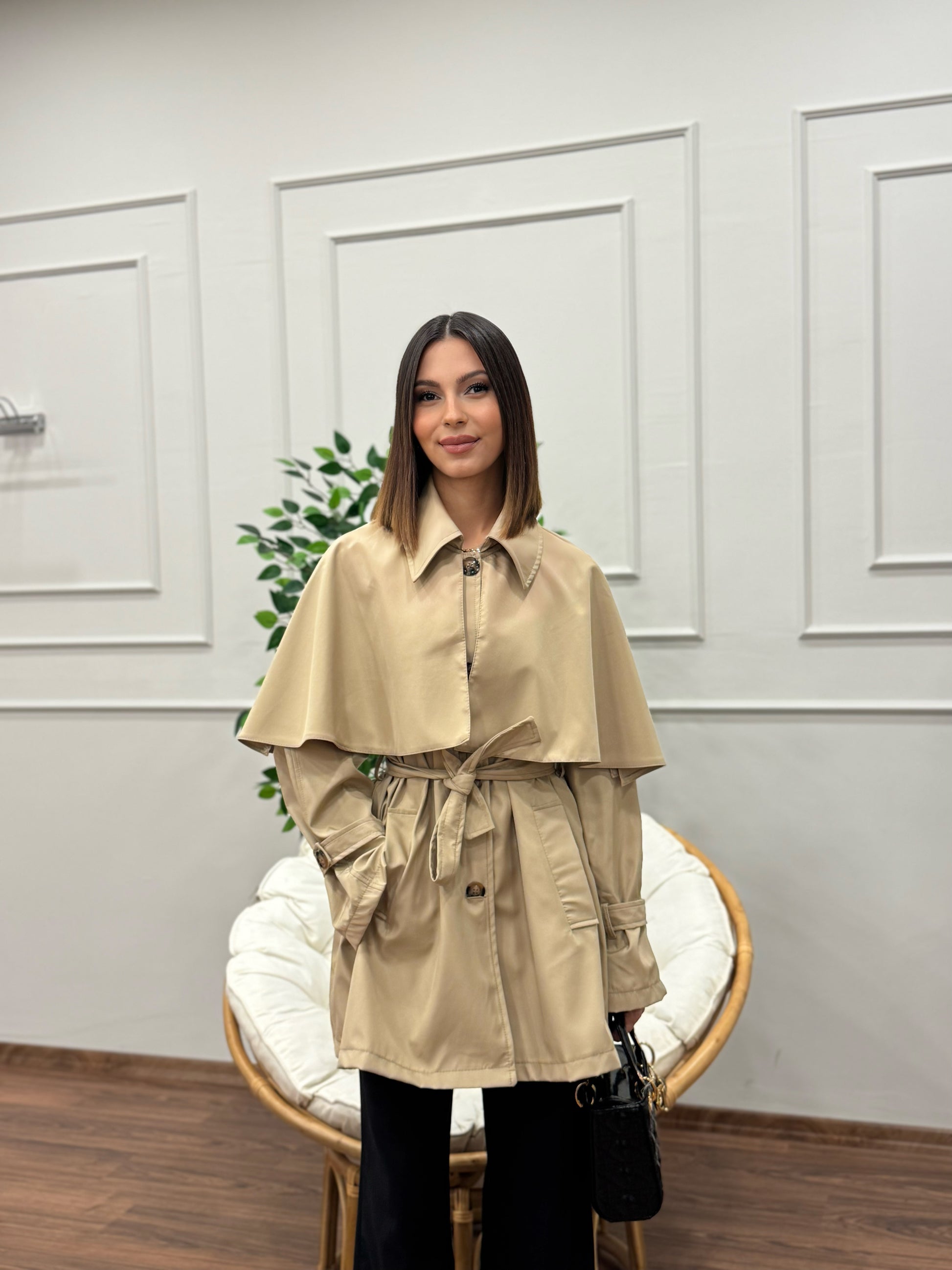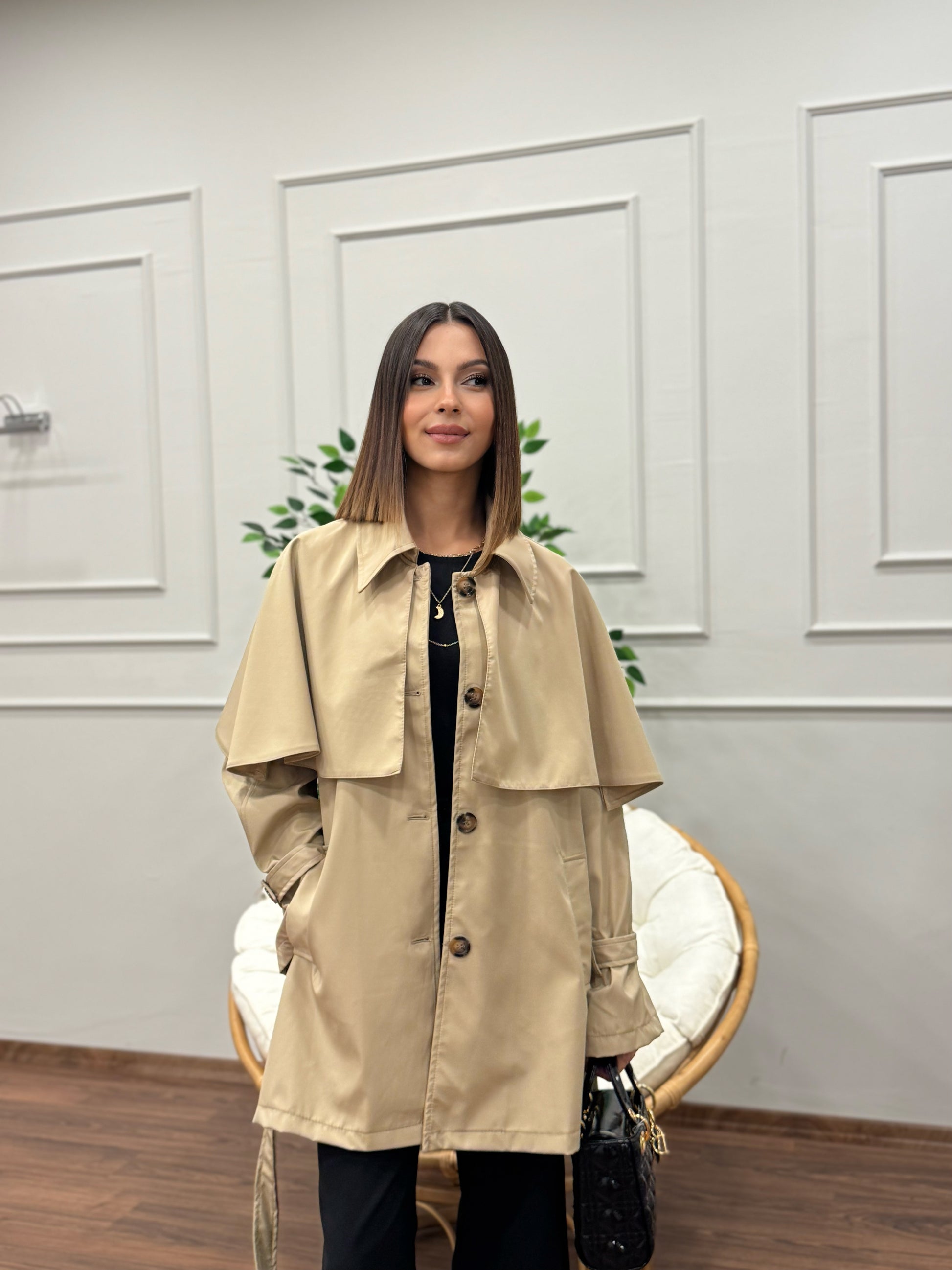 Rüzgarlık Detaylı Ekru Kaşe Kaban