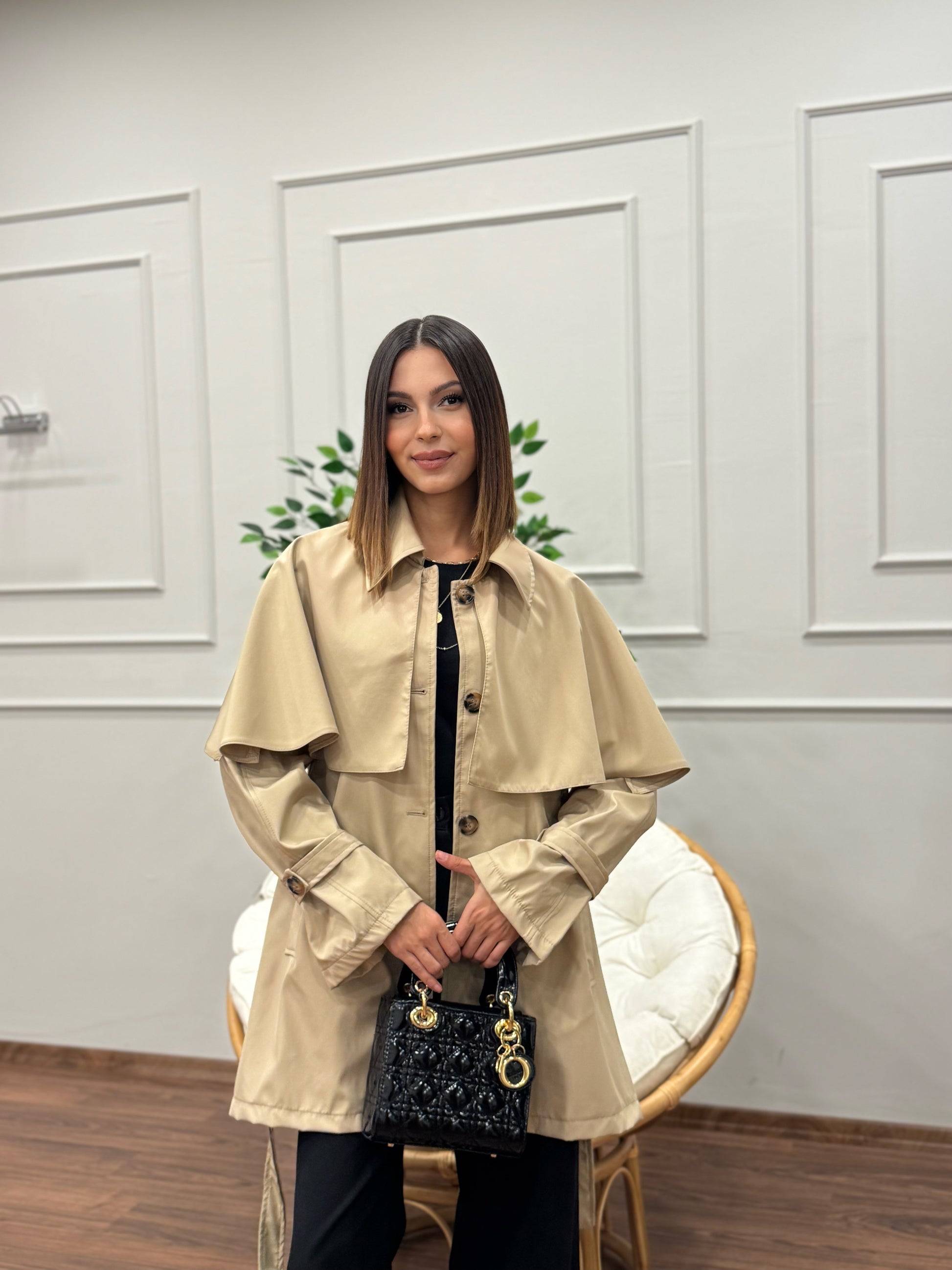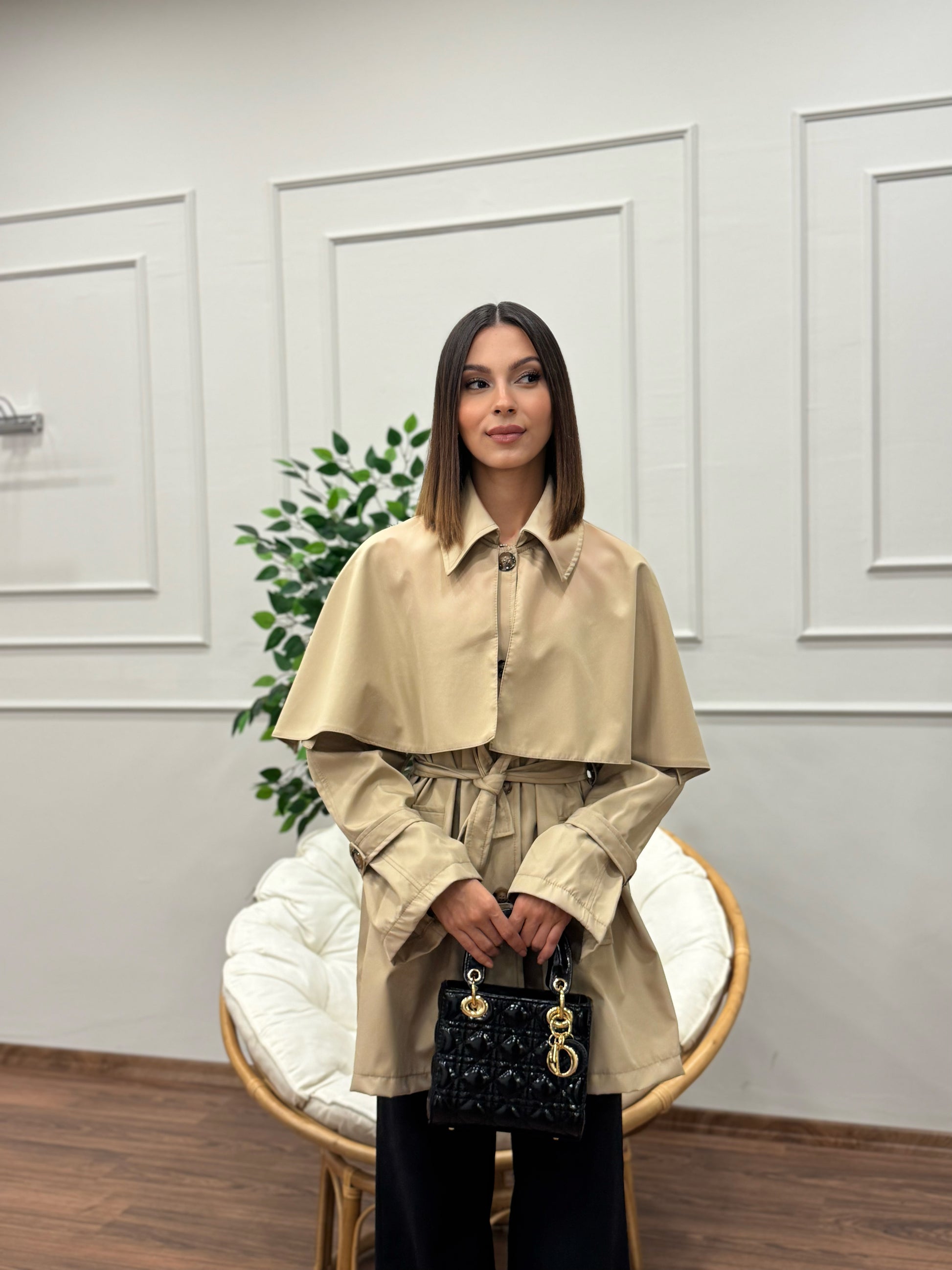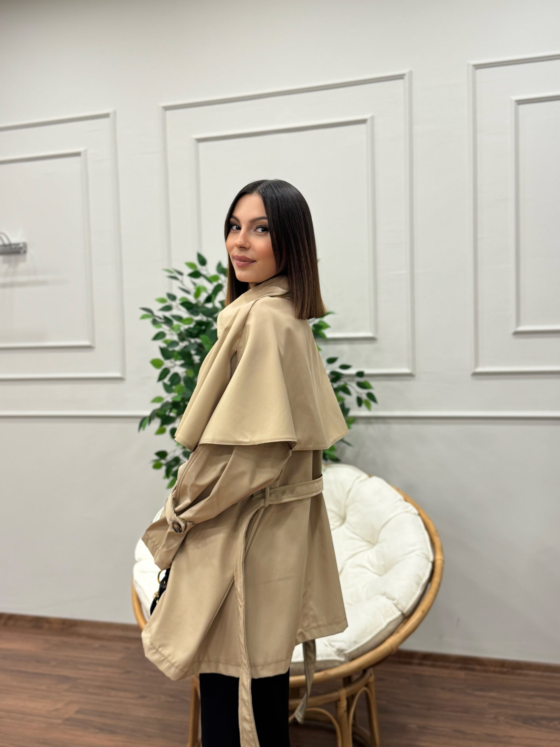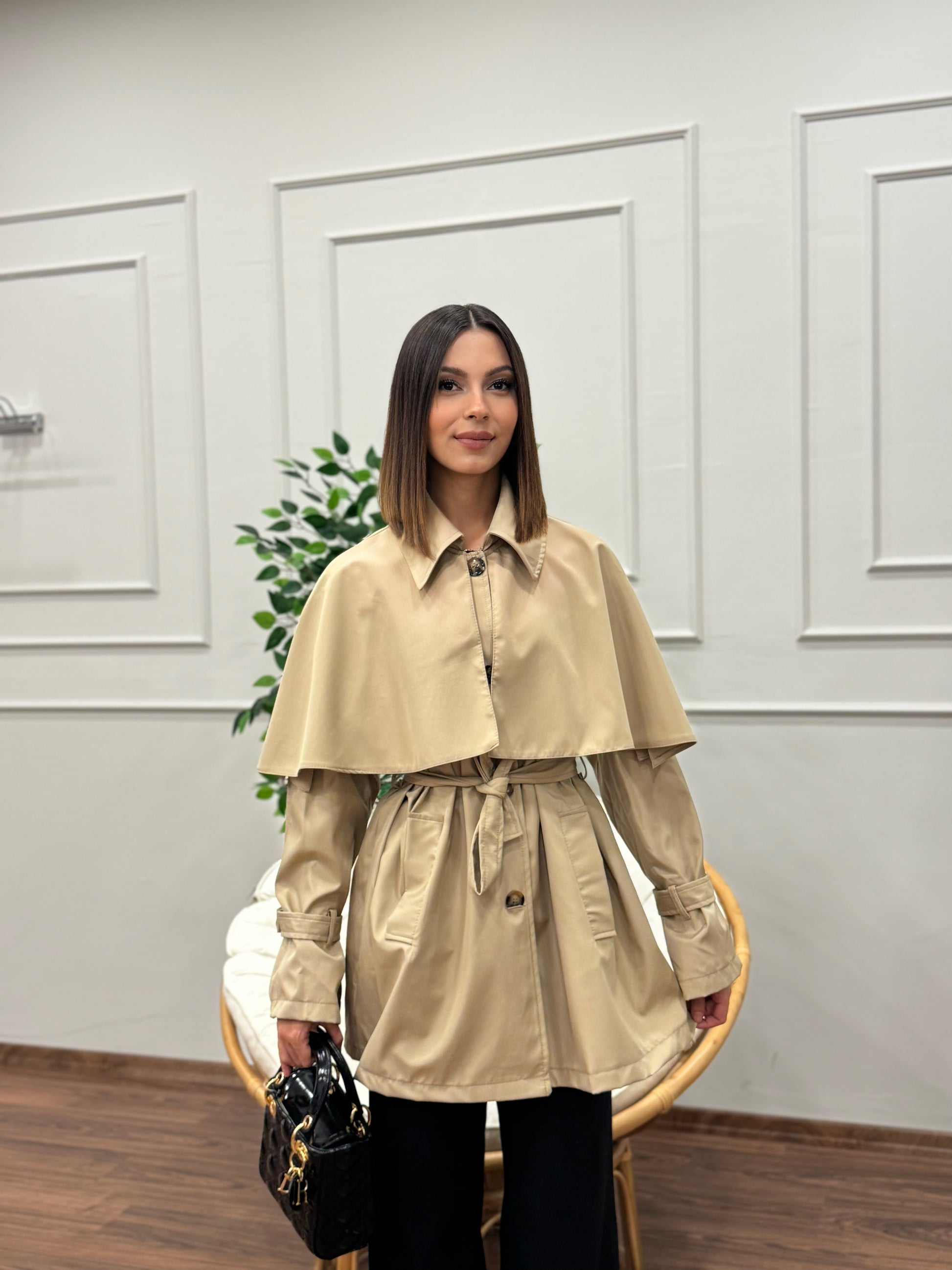 Rüzgarlık Detaylı Ekru Kaşe Kaban